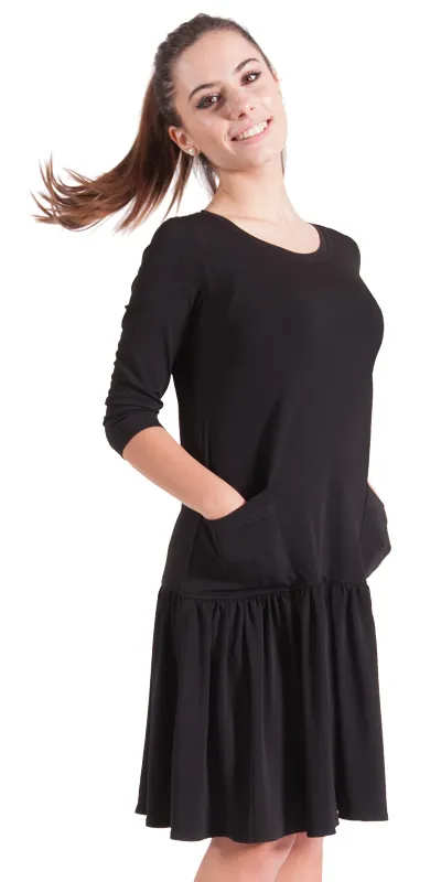 ABITO donna in jersey con tasche, collo tondo e gonna arricciata.