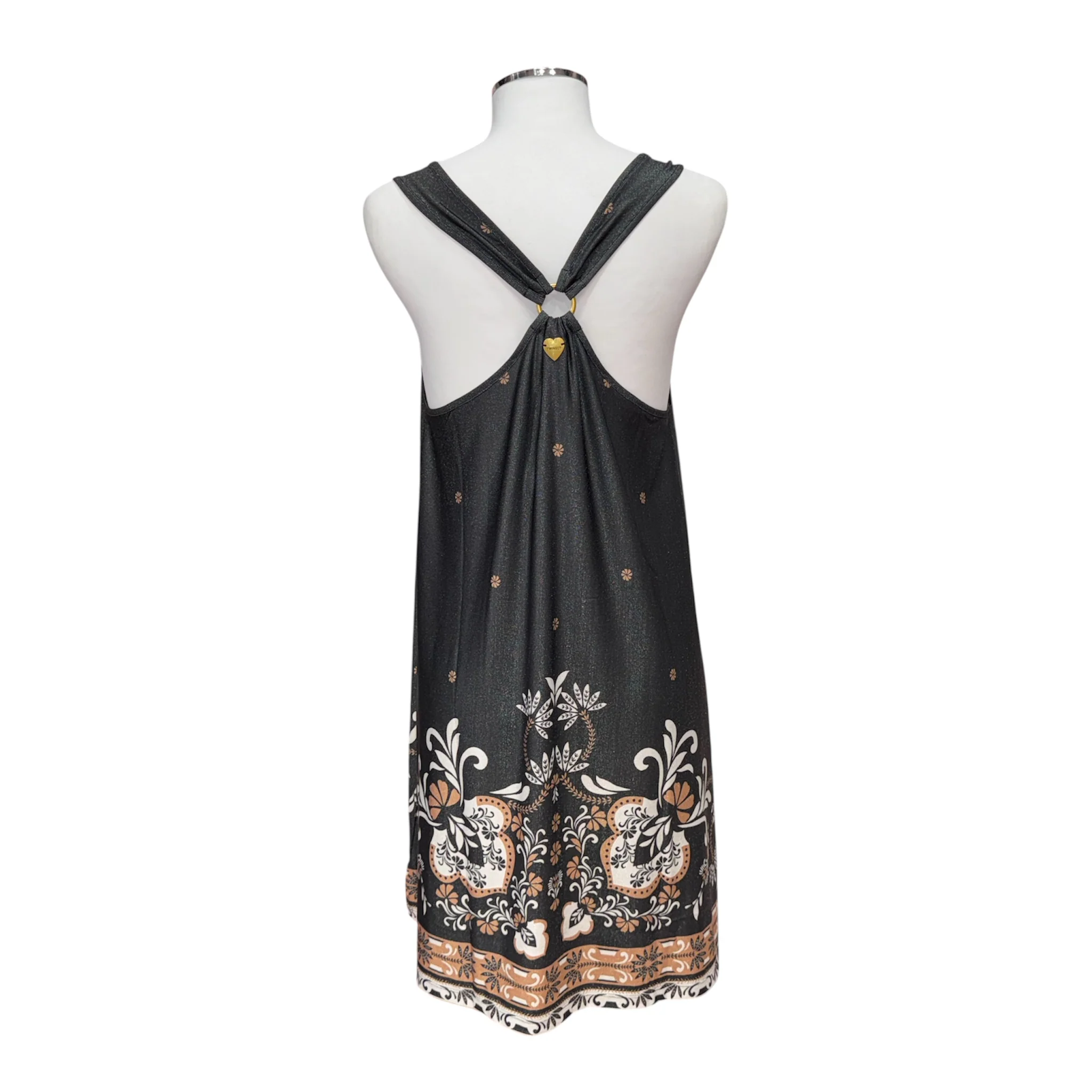 abito corto smanicato, leggermente lurex, incrociato sul retro 80%PL 10%EA 10%PLM Colore Nero