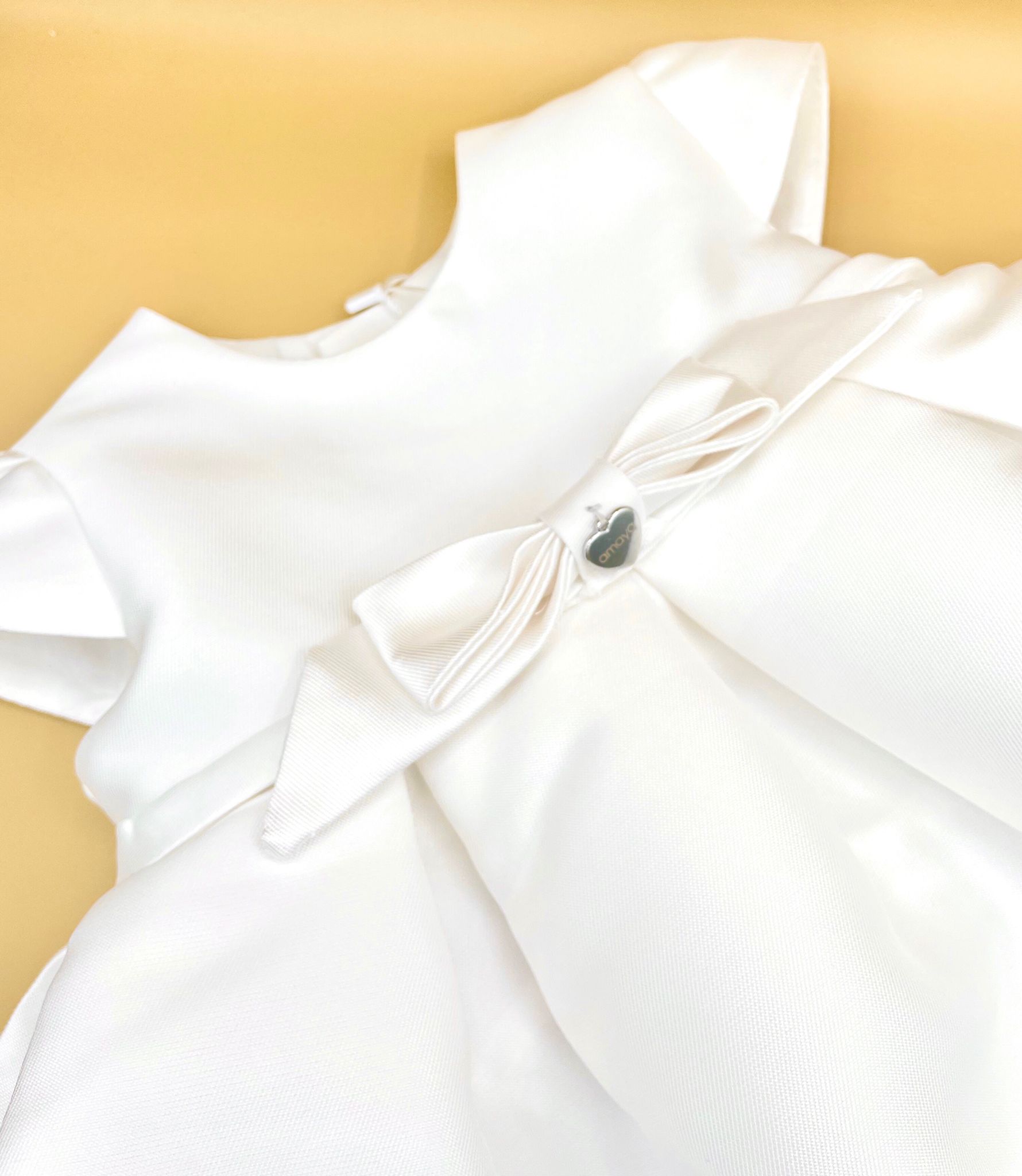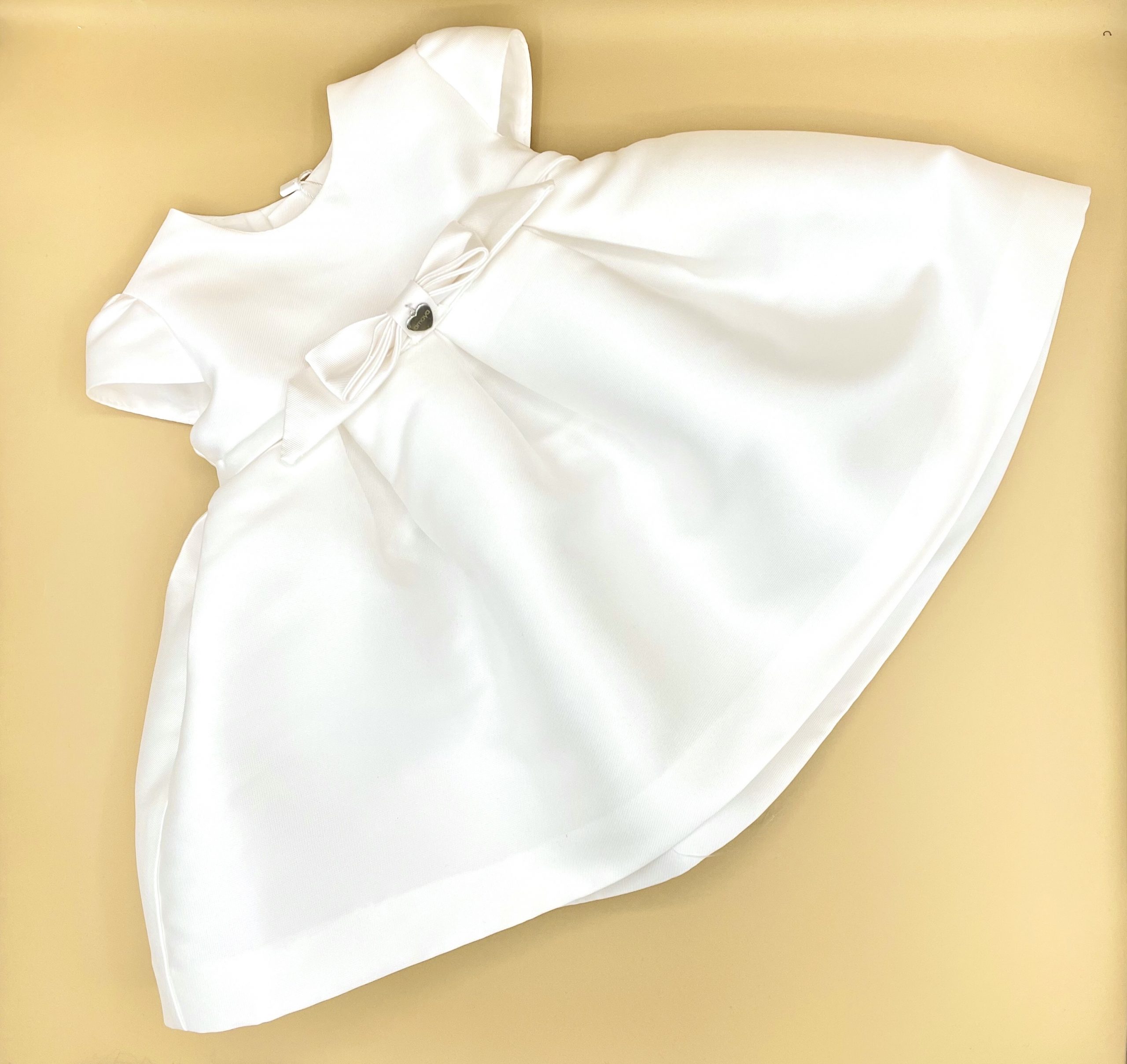Meraviglioso abito da cerimonia bianco con fiocco centrale .