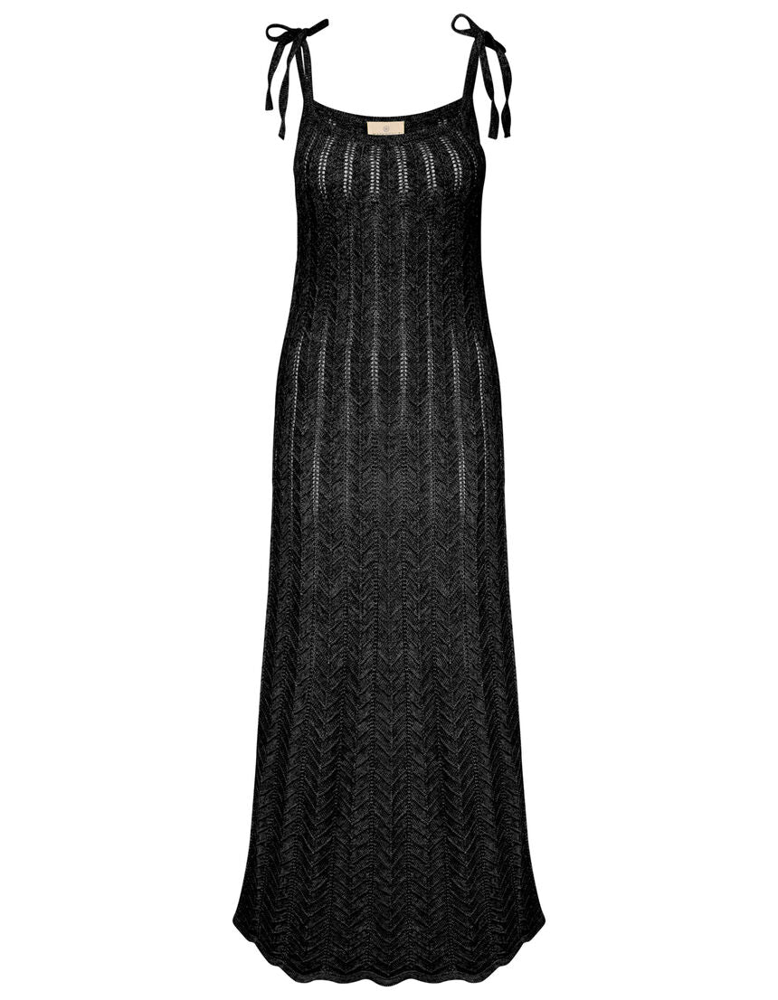 Abito lungo in filo traforato effetto spina di pesce.