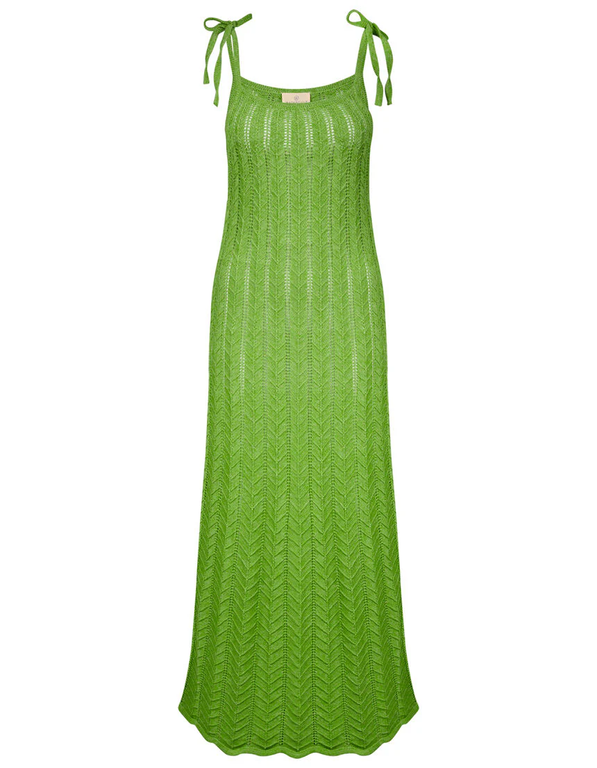 Abito lungo in filo traforato effetto spina di pesce.