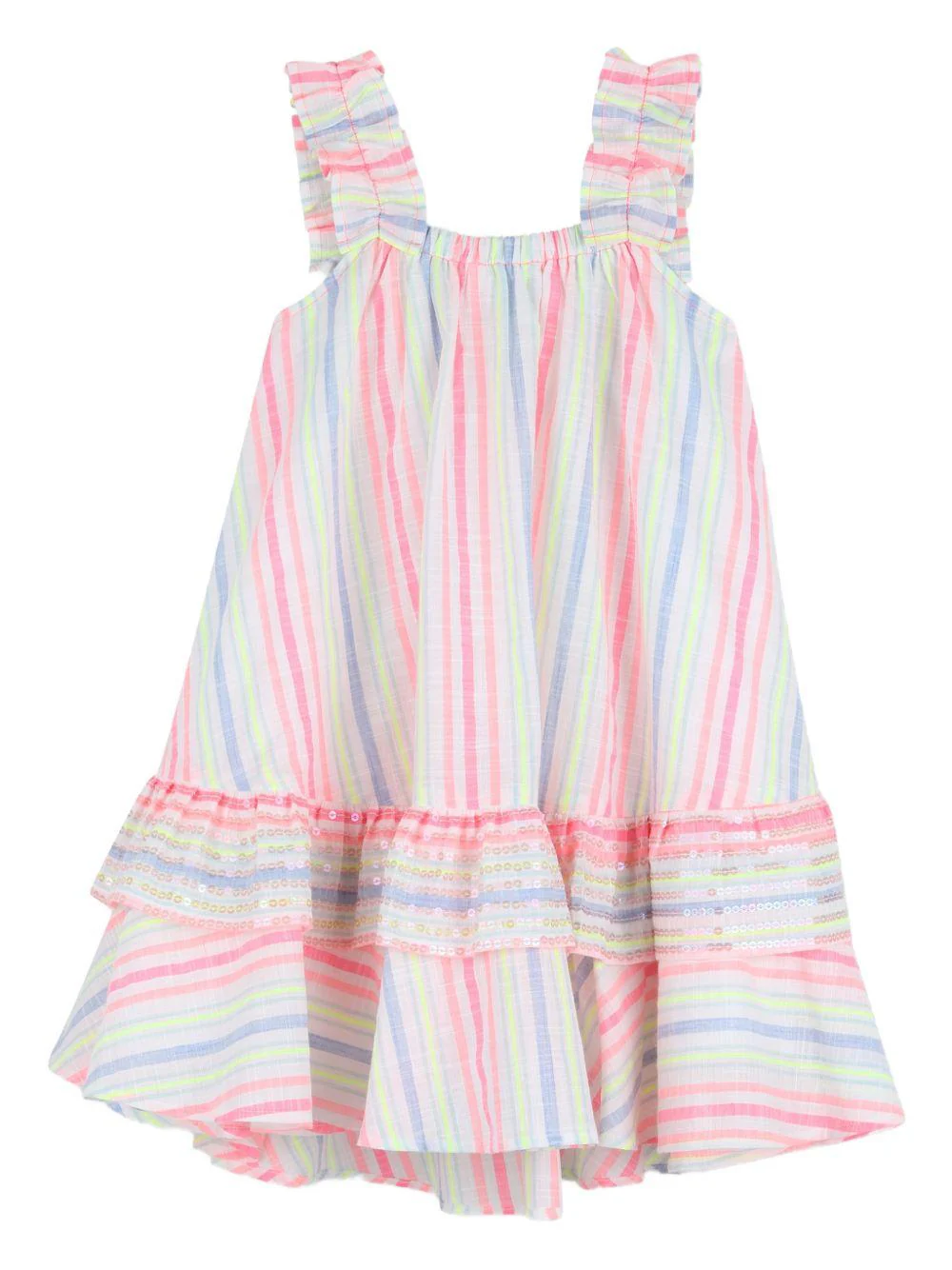 Abito a righe Billieblush, multicolor, spalline larghe elasticizzate, motivo a righe verticali, gonna con balze. Composizionecotone 100%