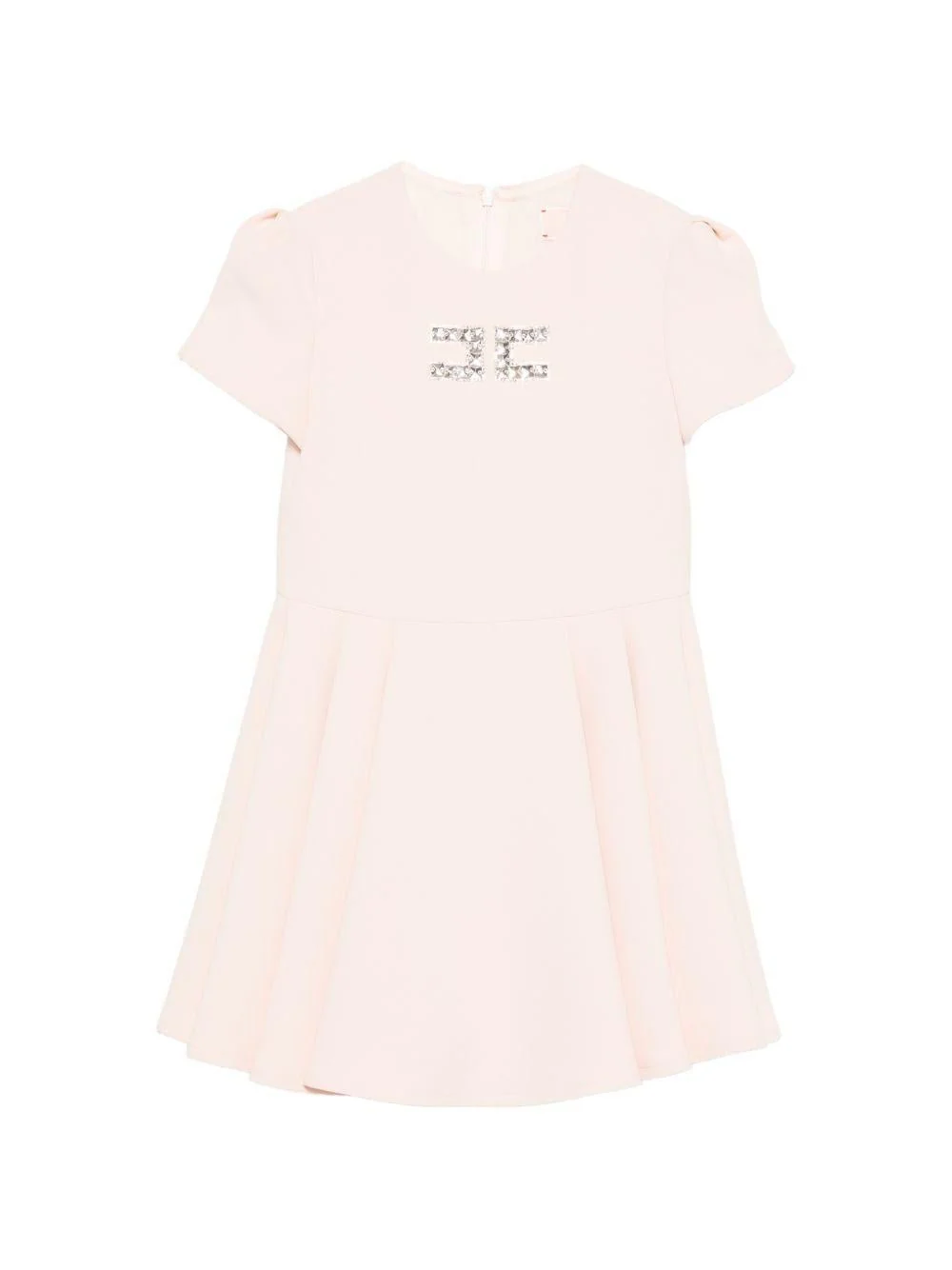 Abito con logo Elisabetta Franchi Kids, rosa, girocollo, maniche corte, logo decorato sul davanti, gonna plissettata, chiusura con zip sul retro.