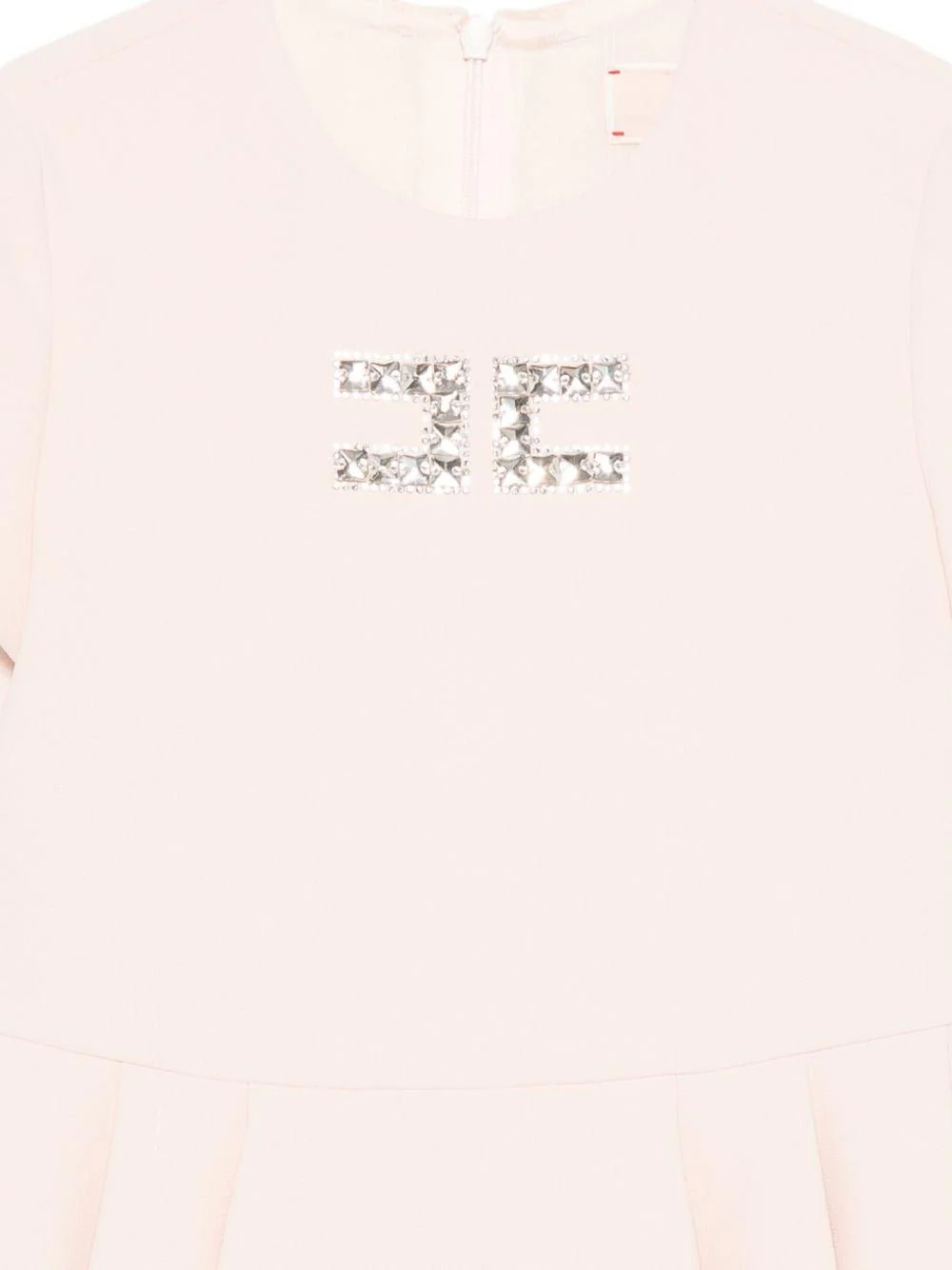 Abito con logo Elisabetta Franchi Kids, rosa, girocollo, maniche corte, logo decorato sul davanti, gonna plissettata, chiusura con zip sul retro. Made in Italy ComposizioneEsterno: poliestere 94%, elastam 6% Fodera: viscosa 66%, poliestere 33%