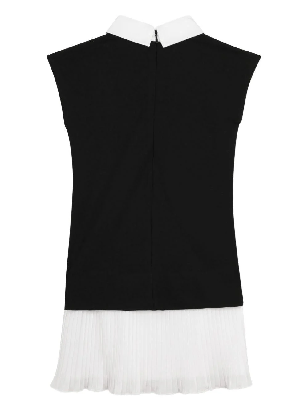 Abito smanicato Karl Lagerfeld Kids, nero/bianco, colletto classico, cravatta con logo removibile, senza maniche, gonna plissettata a contrasto, chiusura con zip sul retro. Composizione 62%viscosa, 33%poliammide, 5%elastan