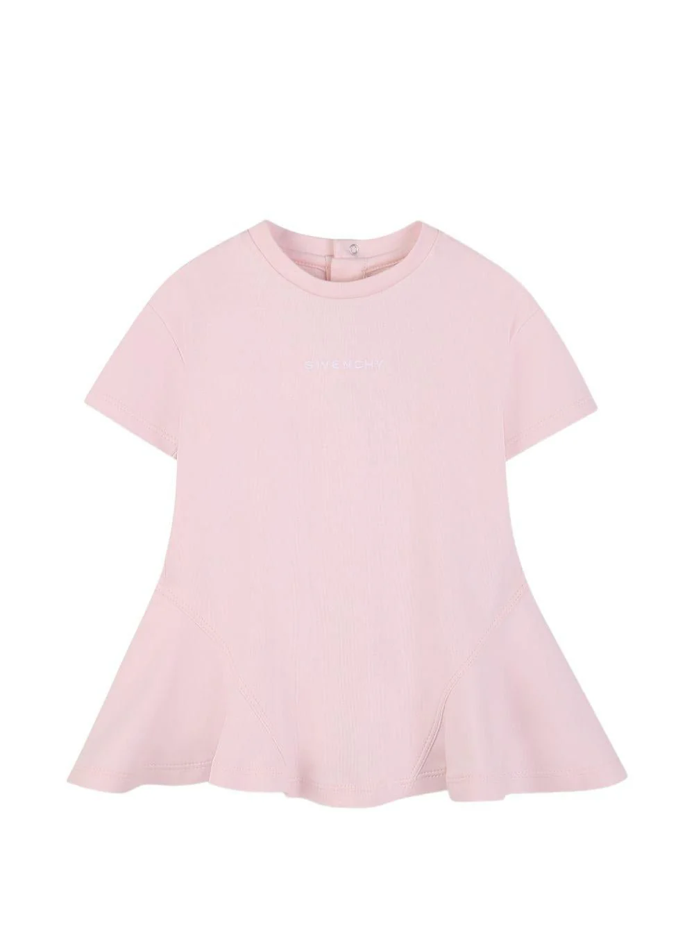 Abito con logo Givenchy Kids, rosa, girocollo, maniche corte, logo ricamato sul davanti, gonna svasata, chiusura con bottoni sul retro.