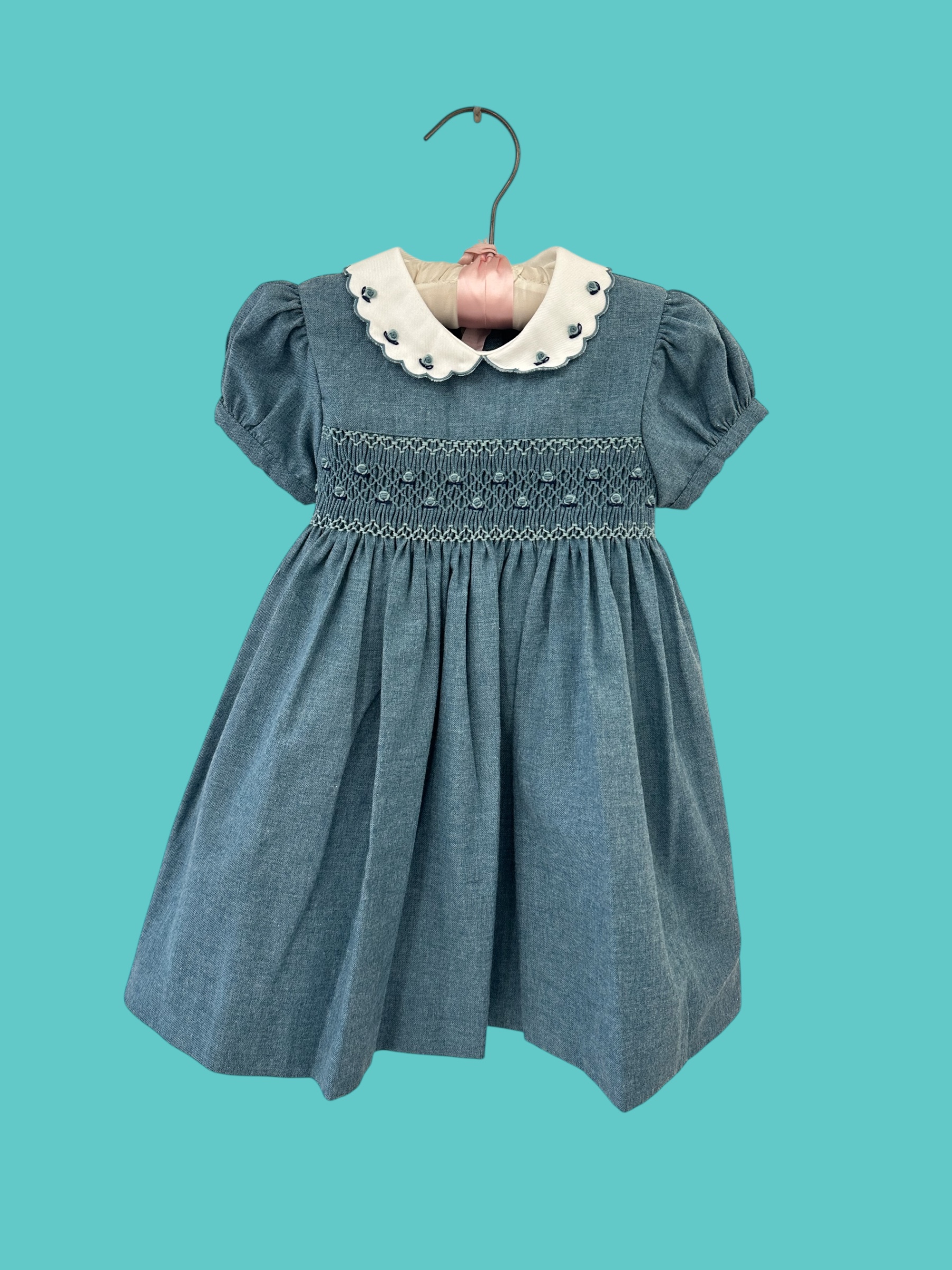 abito in caldo cotone lavorazione punto smock prodotto ricamato a mano