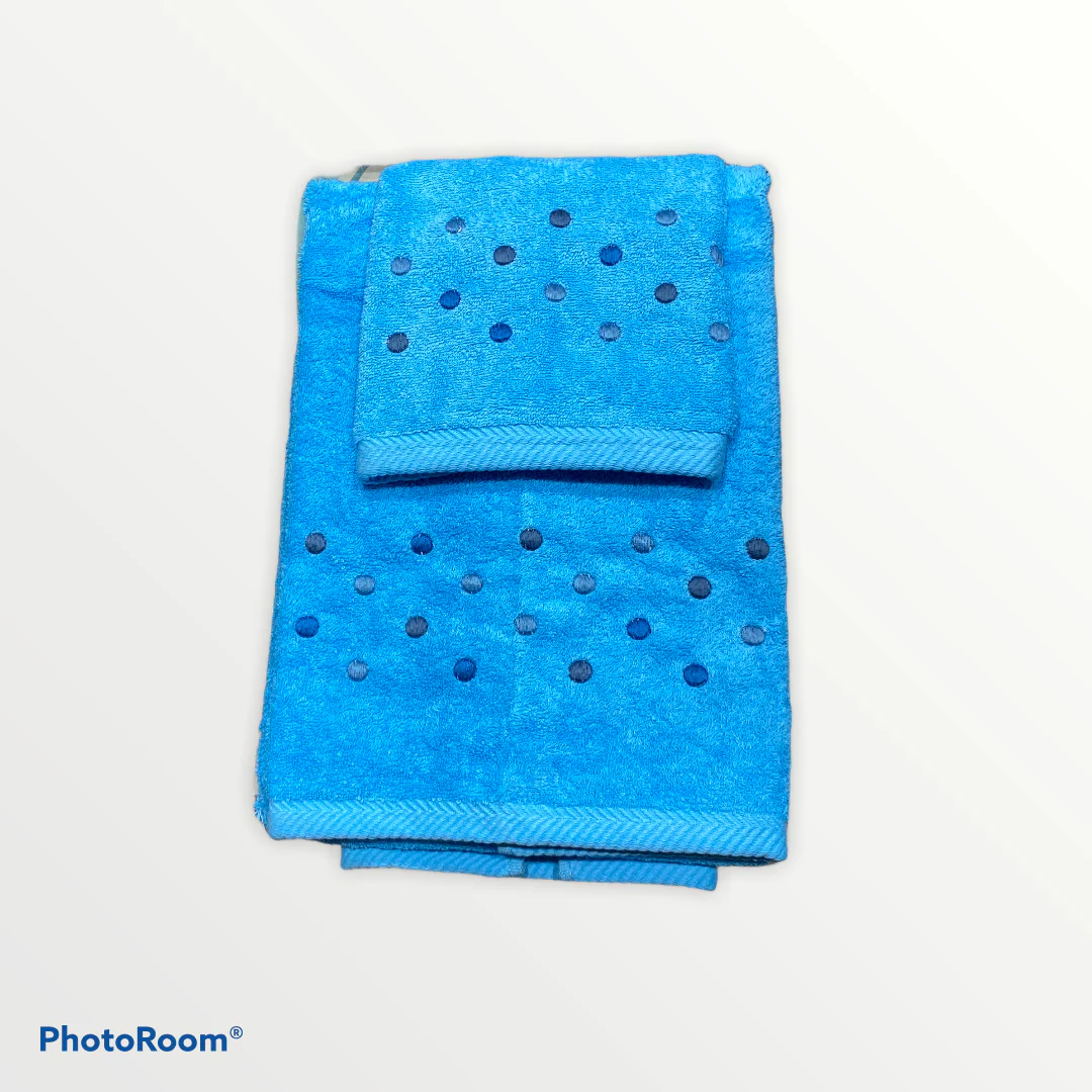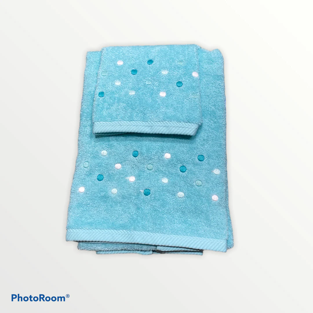 Asciugamani in Spugna con Pois Multicolor Ricamati di DEA. Ospite + Viso Dimensione: Viso 115 x 60 – Ospite 65 x 40 100% Cotone MADE IN ITALY