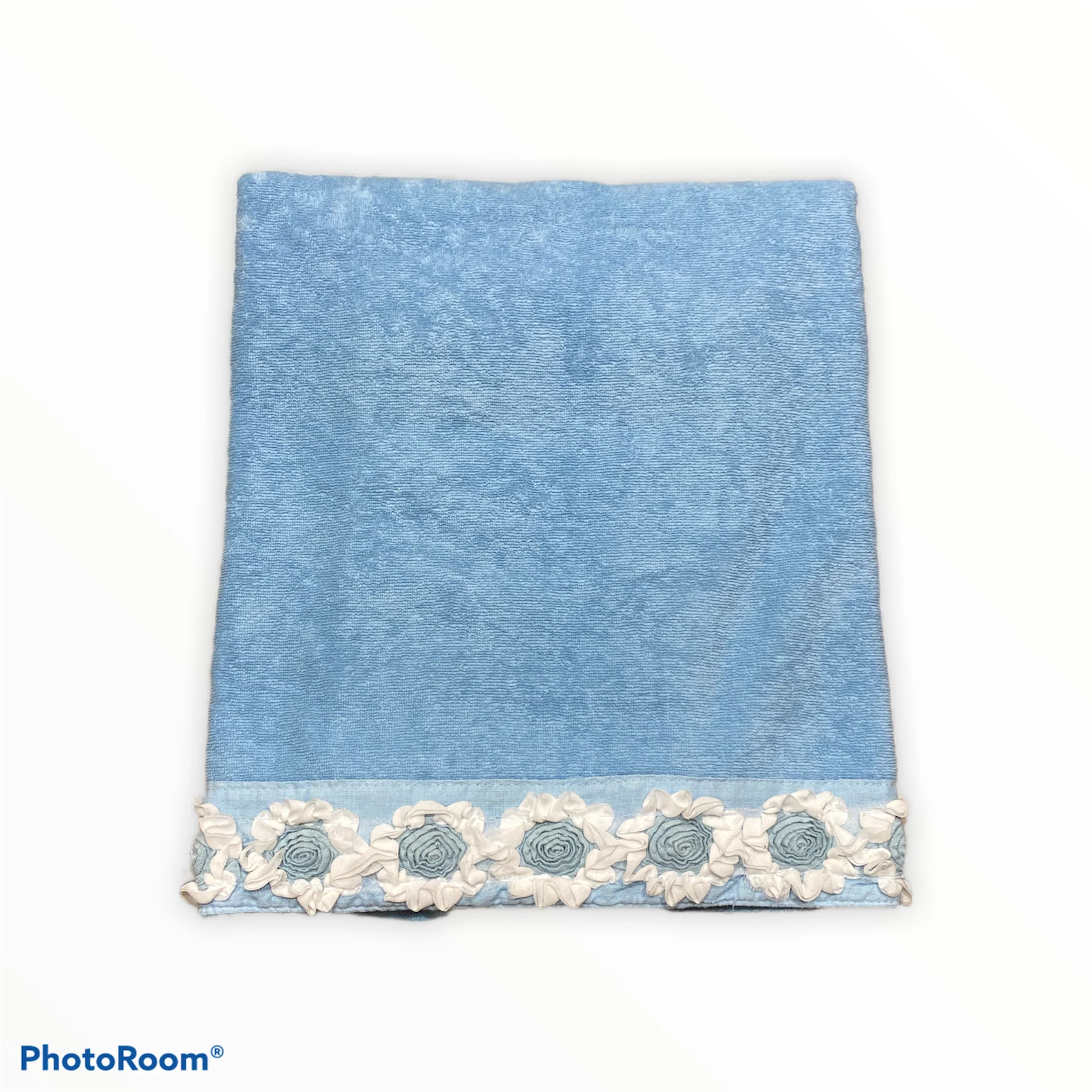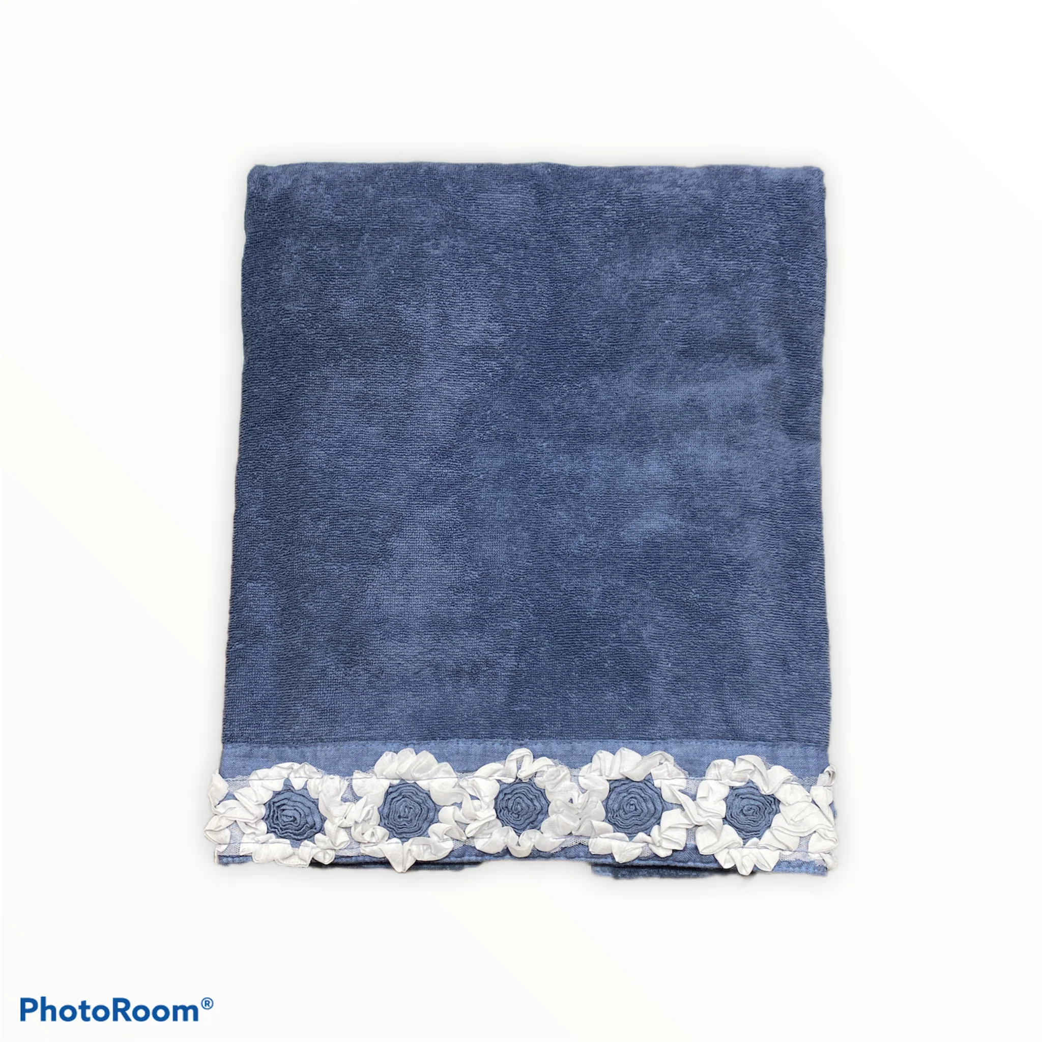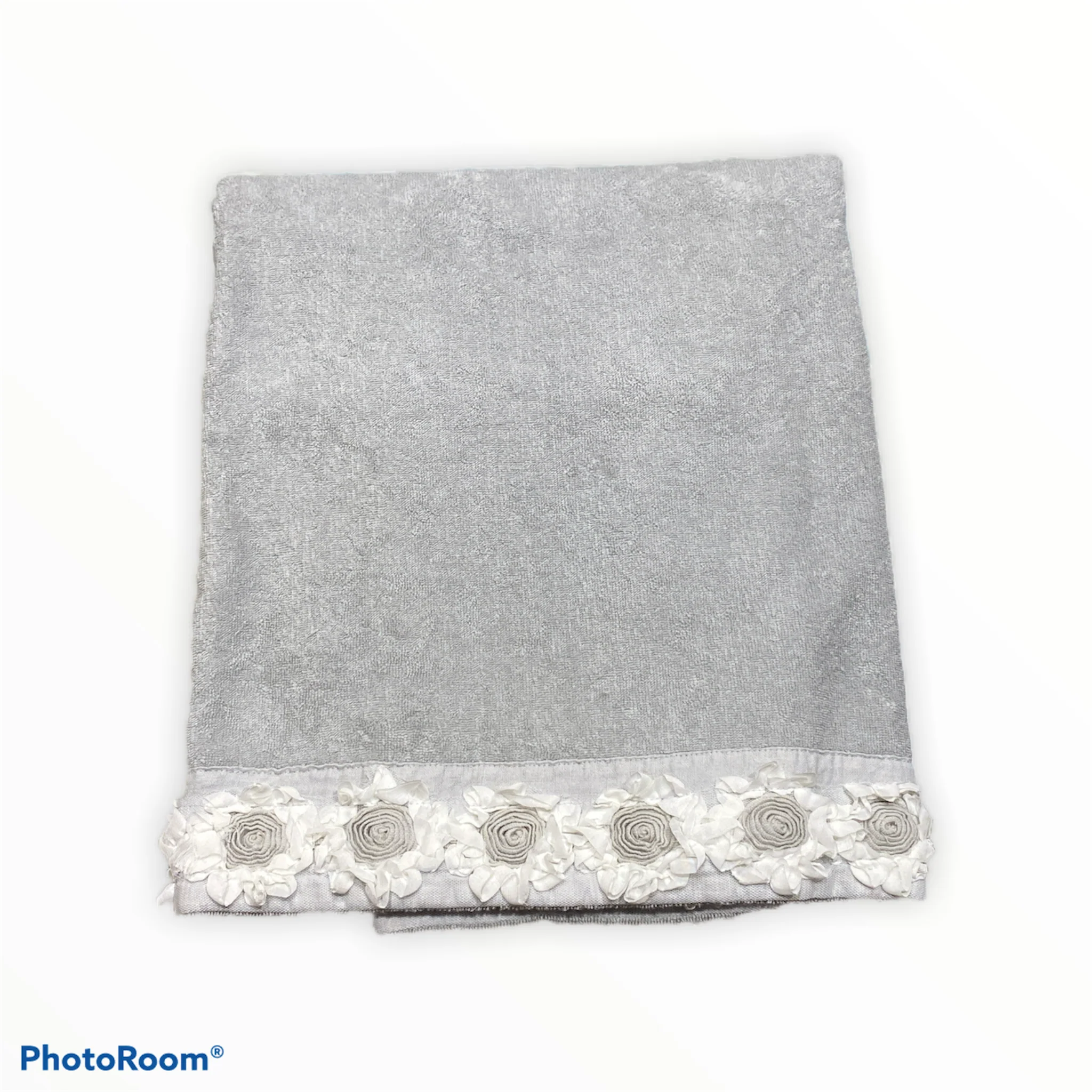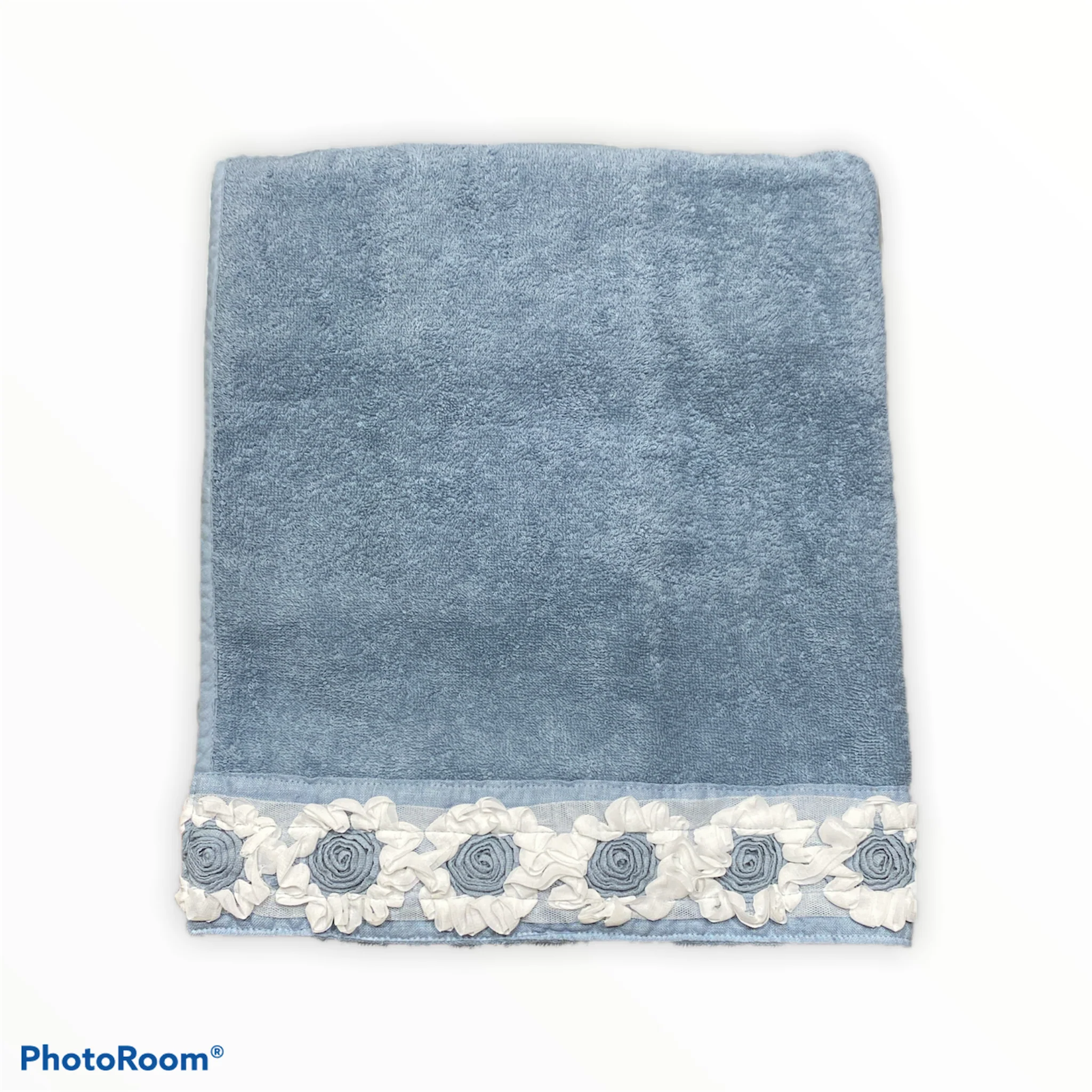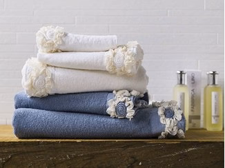 Coppia Asciugamani con Applicazione di Fiori a Rilievo Peonie di Fabbrica del Lino