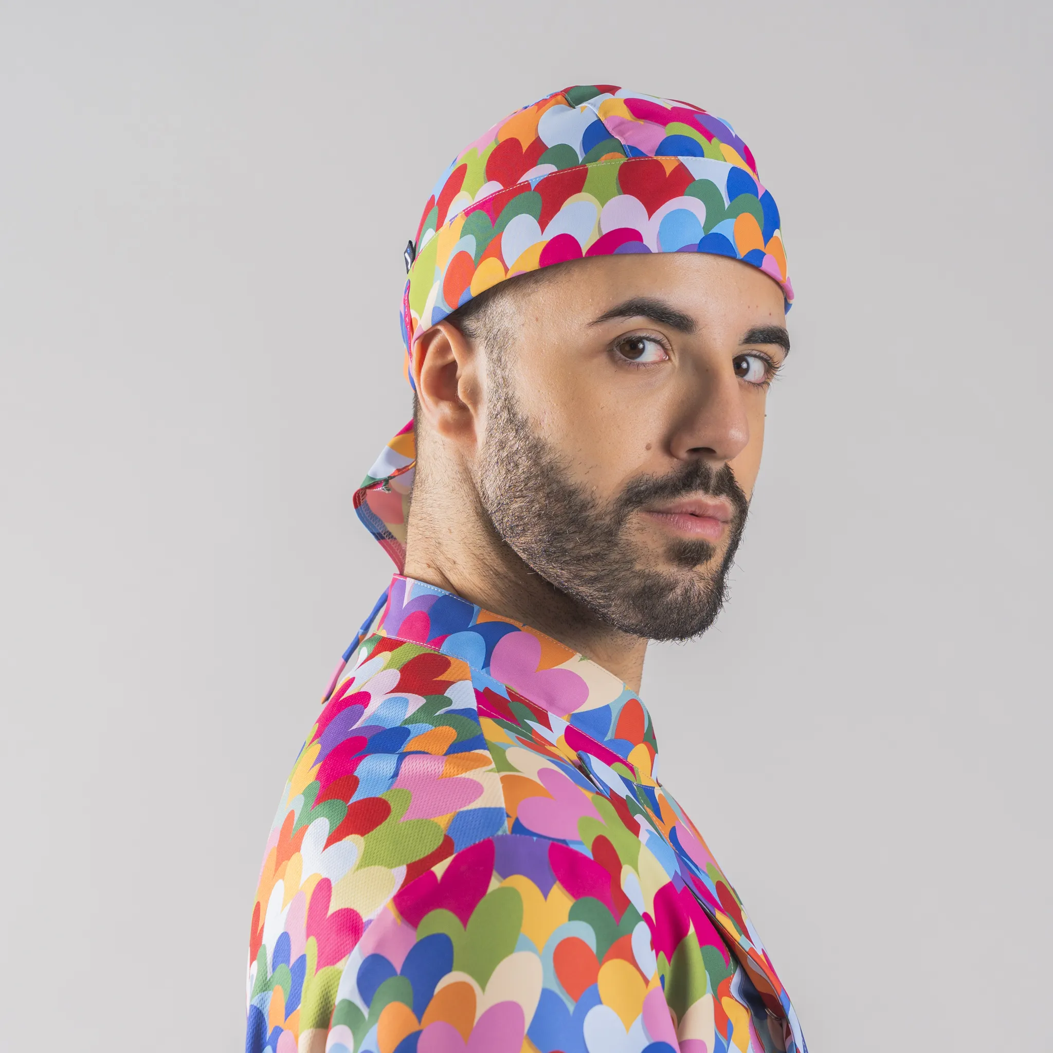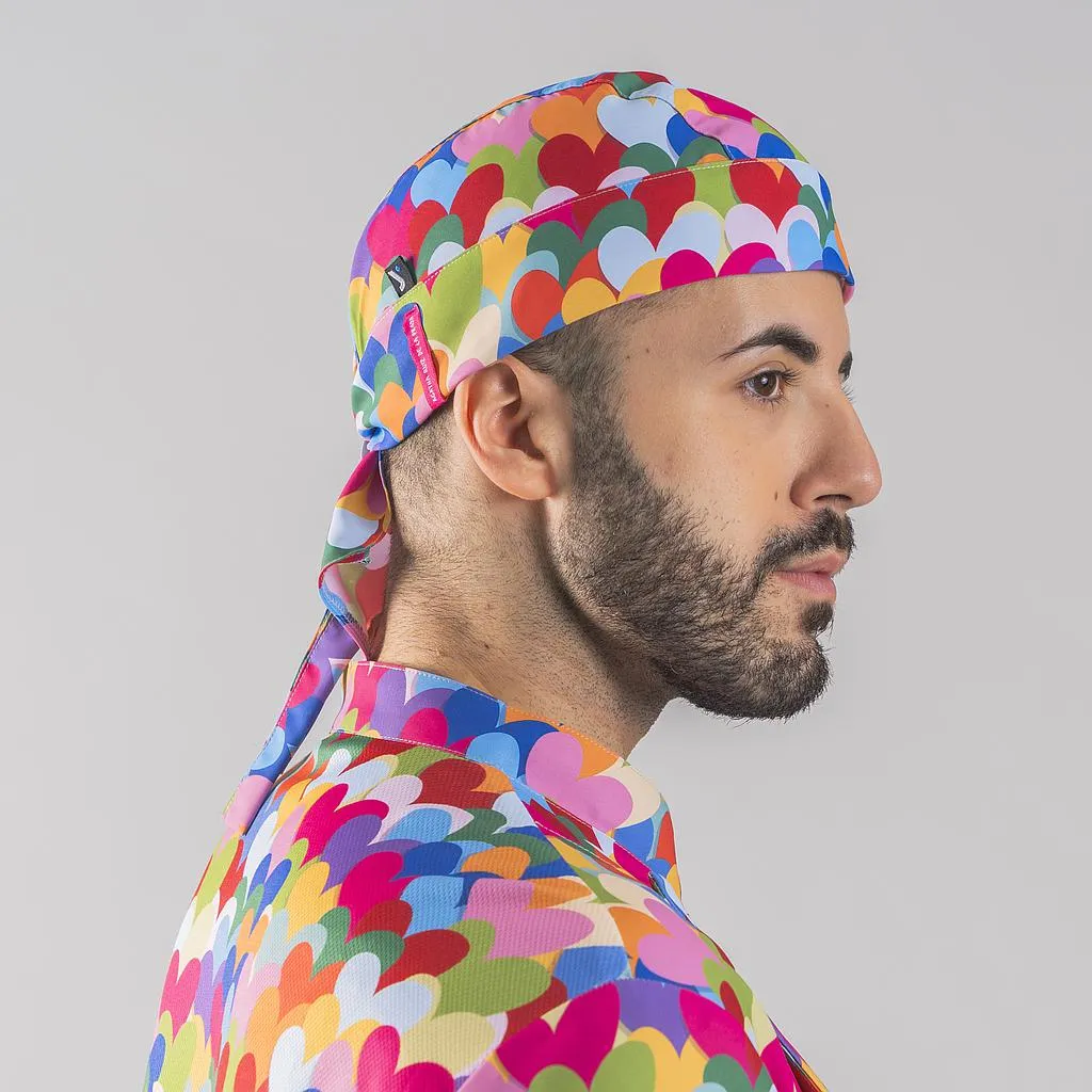Aggiungete un tocco vivace e divertente alla vostra uniforme con il cappello pirata Agatha Cotton Heart. Disegnato da Agatha Ruiz de la Prada, questo cappello presenta una stampa a cuori multicolore che aggiunge allegria e stile al vostro look da cucina. Realizzato in twill di cotone organico al 100%, offre comfort e traspirabilità per le lunghe giornate in cucina.