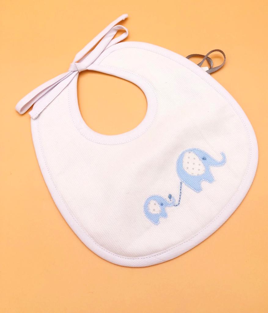 Bavetta in rigatino di cotone con applicazione realizzata a mano.
