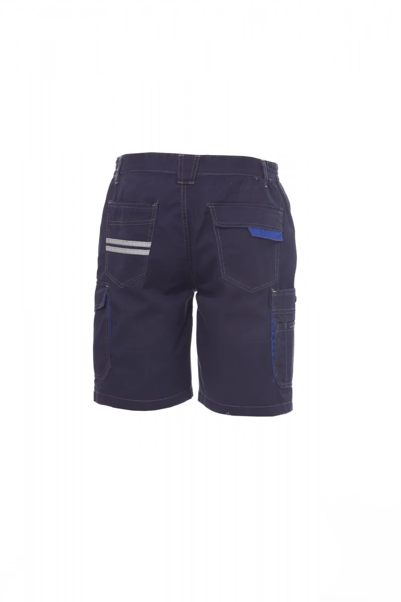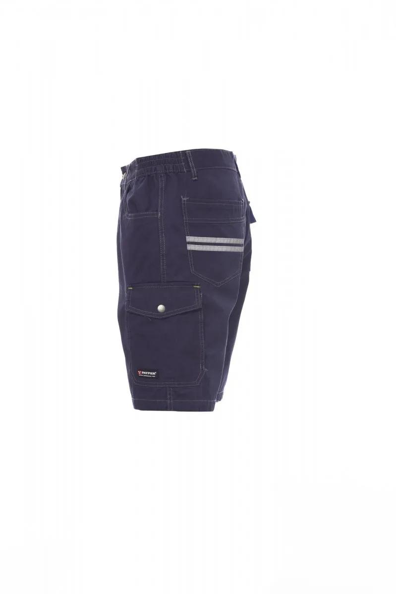 Bermuda uomo, elastici laterali e passanti in vita, chiusura con zip e bottone in metallo, tre tasche anteriori a taglio jeans, una tasca laterale LOCK SYSTEM e una tasca con zip, una tasca multifunzione, due tasche posteriori una aperta e una con patta e velcro. Inserti ed impuntare a contrasto, bande reflex su tasca posteriore.