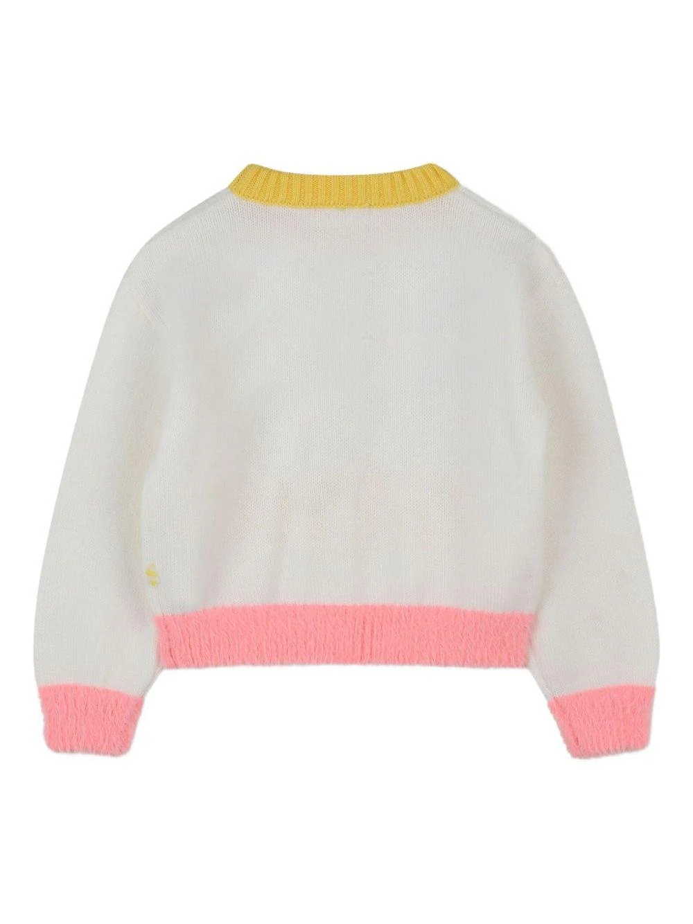 Maglione Billieblush, avorio, girocollo, maniche lunghe, polsini, orli colorati, scritta spazzolata e con paillettes sul davanti.