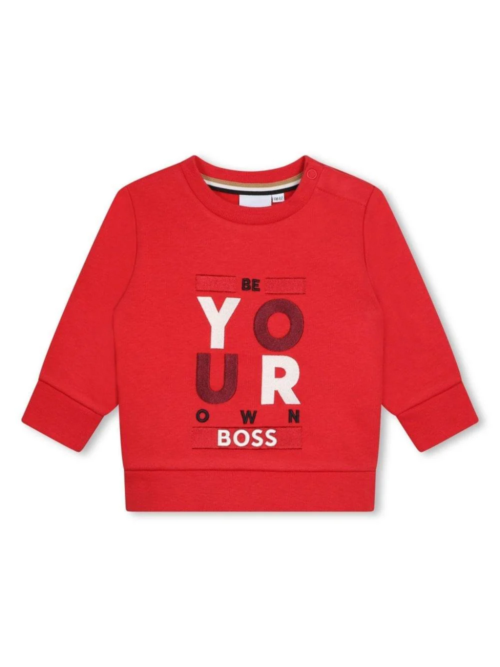 Felpa con stampa Boss Kids, rosso, maniche lunghe, polsini, girocollo, logo in tessutto in rilievo sul davanti, chiusura con bottoni sul davanti.