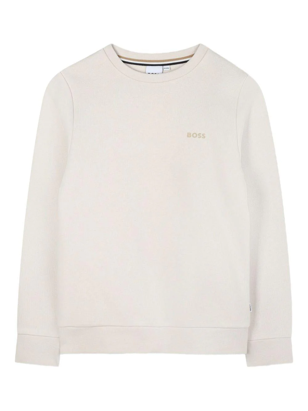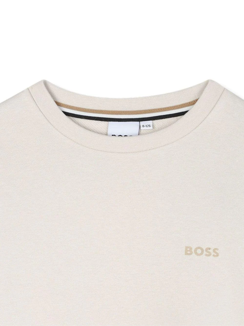 Felpa girocollo Boss Kids, sabbia, maniche lunghe, polsini, stampa logo sul petto.Composizionecotone 87%, poliestere 13%