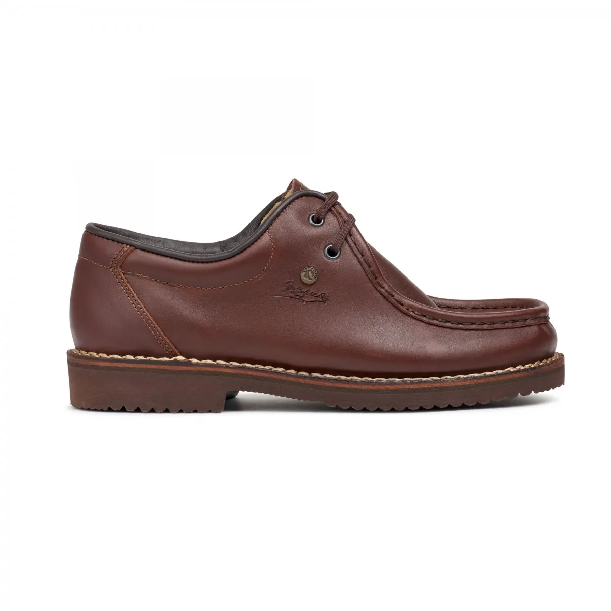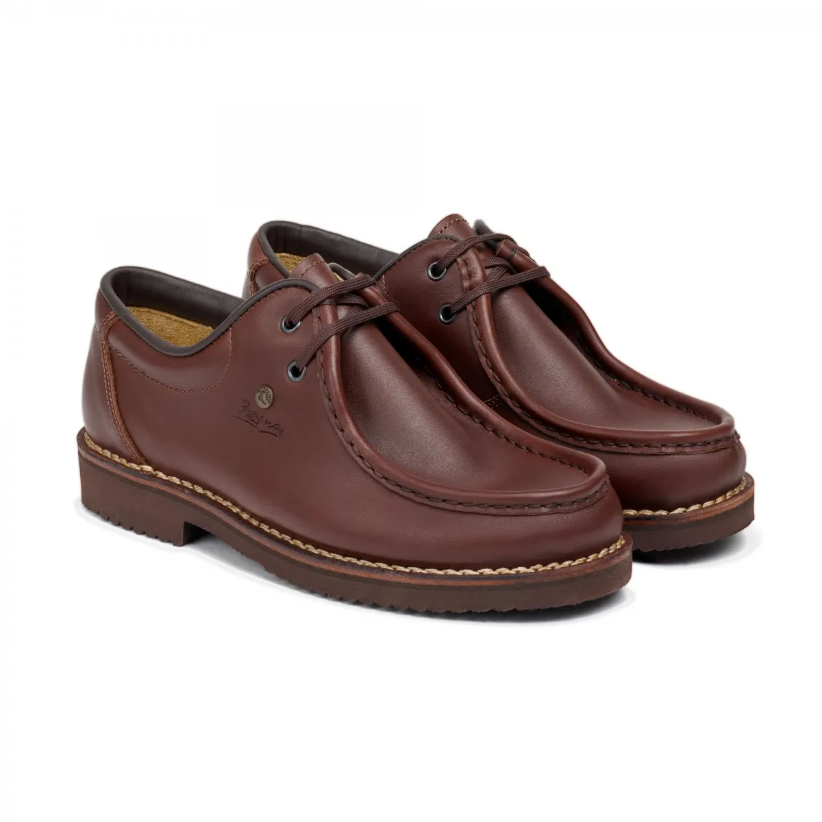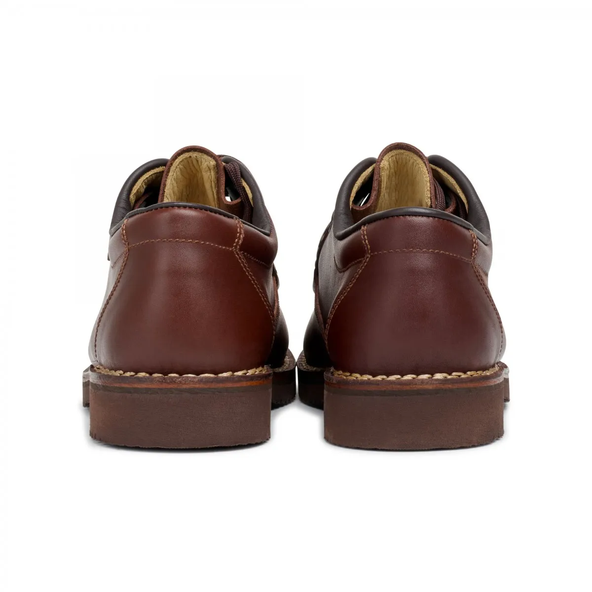 Calzatura in pelle bovina pieno fiore, foderata in pelle di vitello pieno fiore, costruzione “ideal” con doppia cucitura e suola Vibram. Massimo comfort e sostegno durante la giornata.