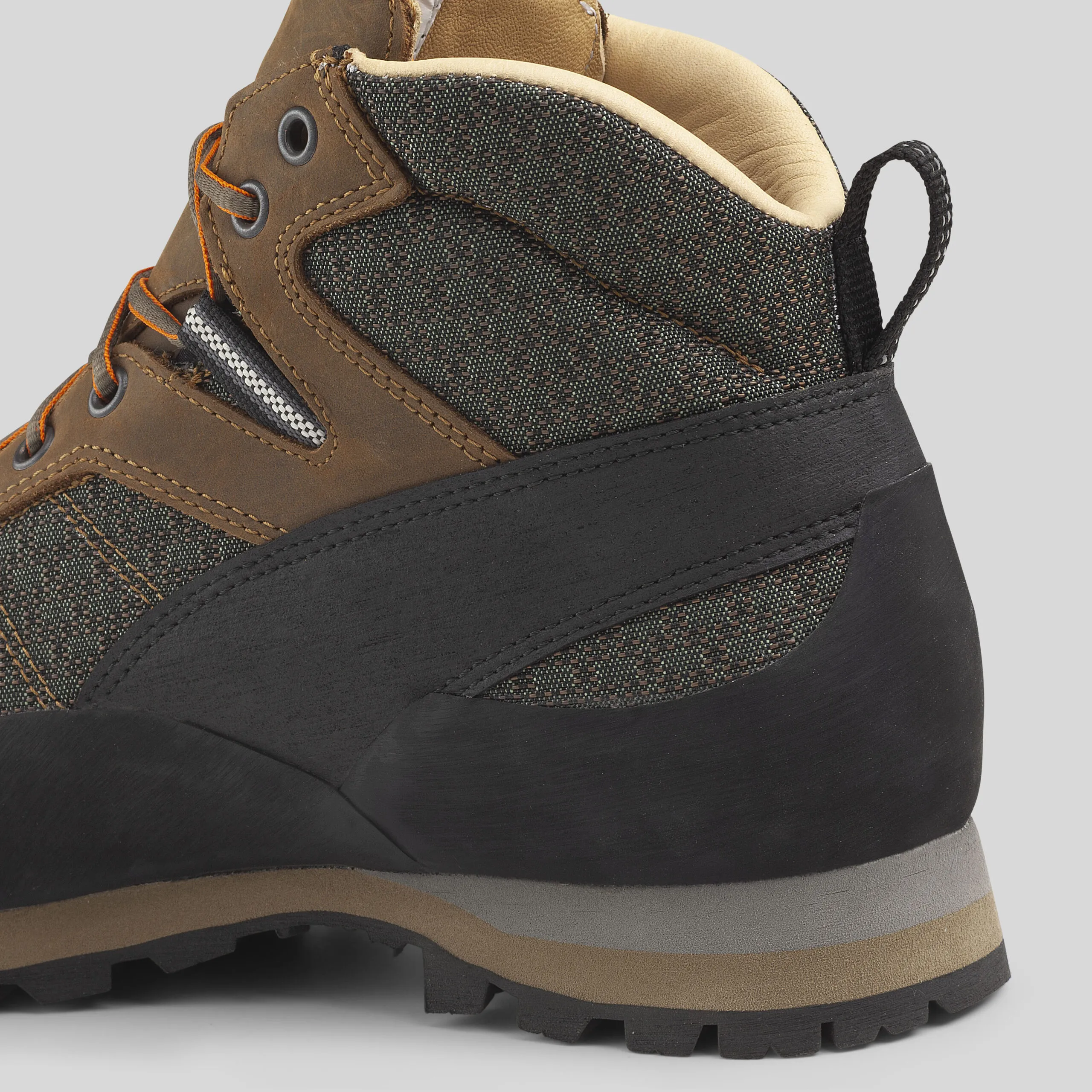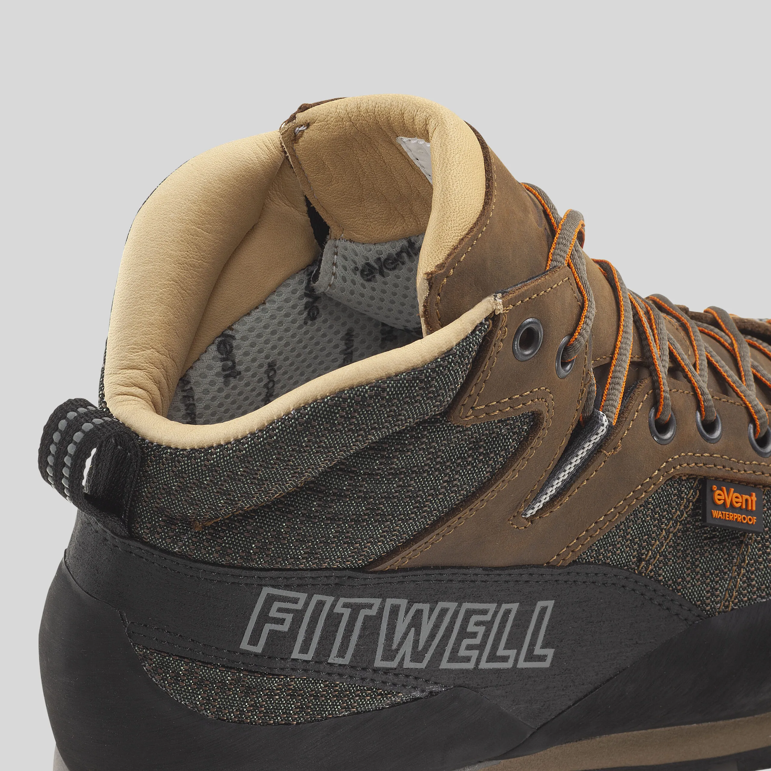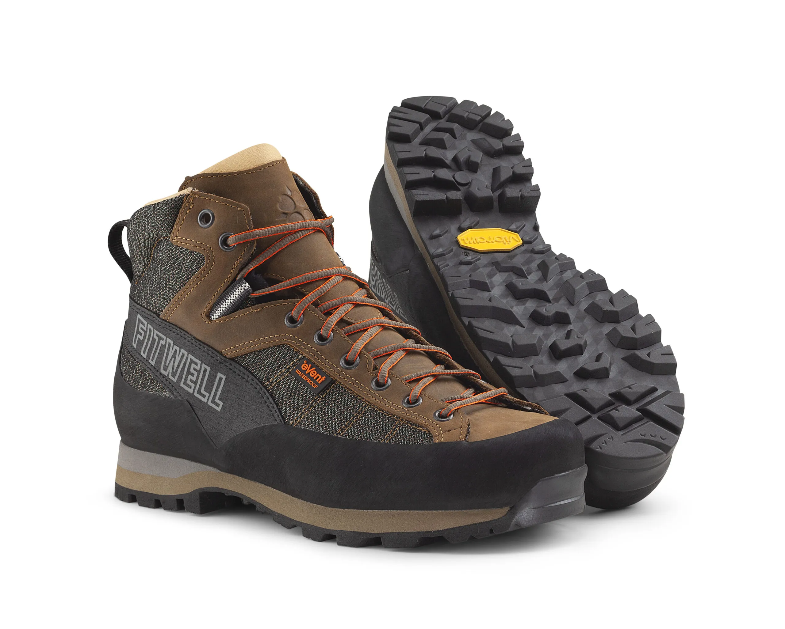 Rivisitazione dello storico modello big wall light per un uso più intensivo. Tomaia in pelle Nubuck e tessuto ultra-resistente ToughTex®. Collarino e soffietti in pelle pieno-fiore con fodera interna in membrana waterproof eVent®. Intersuola e battistrada con dendità differenziata per il massimo comfort e tenuta.