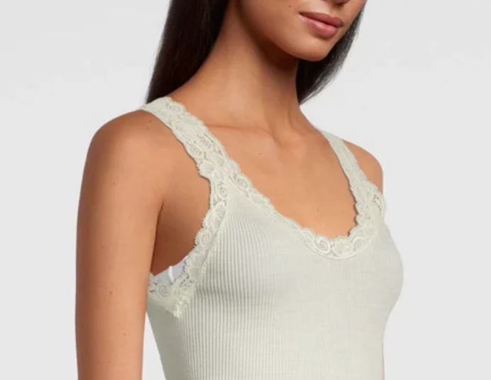 Canotta a Costine con Pizzo in lana seta