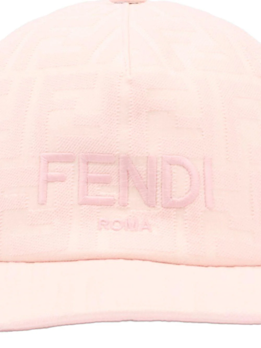 Cappello FF Fendi Kids, rosa, motivo logo monogram FF, logo ricamato sul davanti, visiera, chiusura con strappo sul retro.
