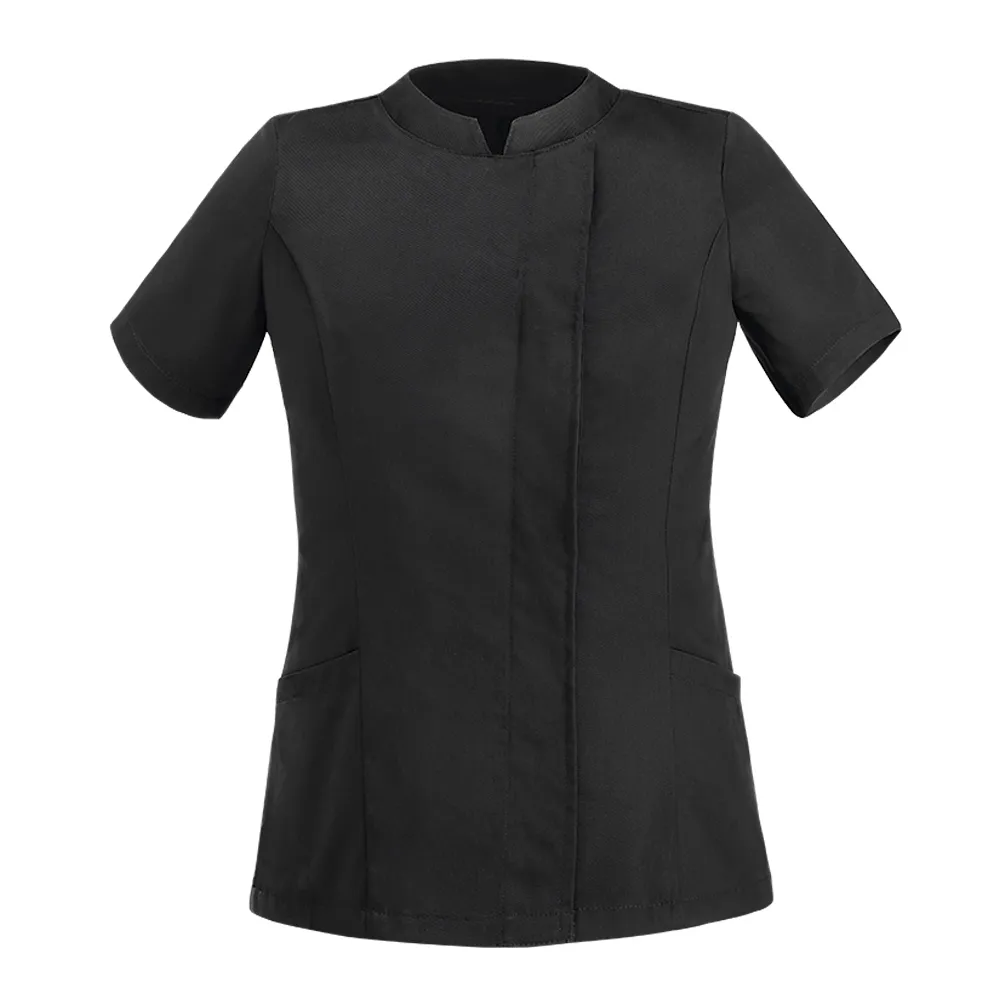 Casacca woman con raffinato colletto, manica corta, bottoni a pressione nascosti e due comode tasche laterali, g 200/mq