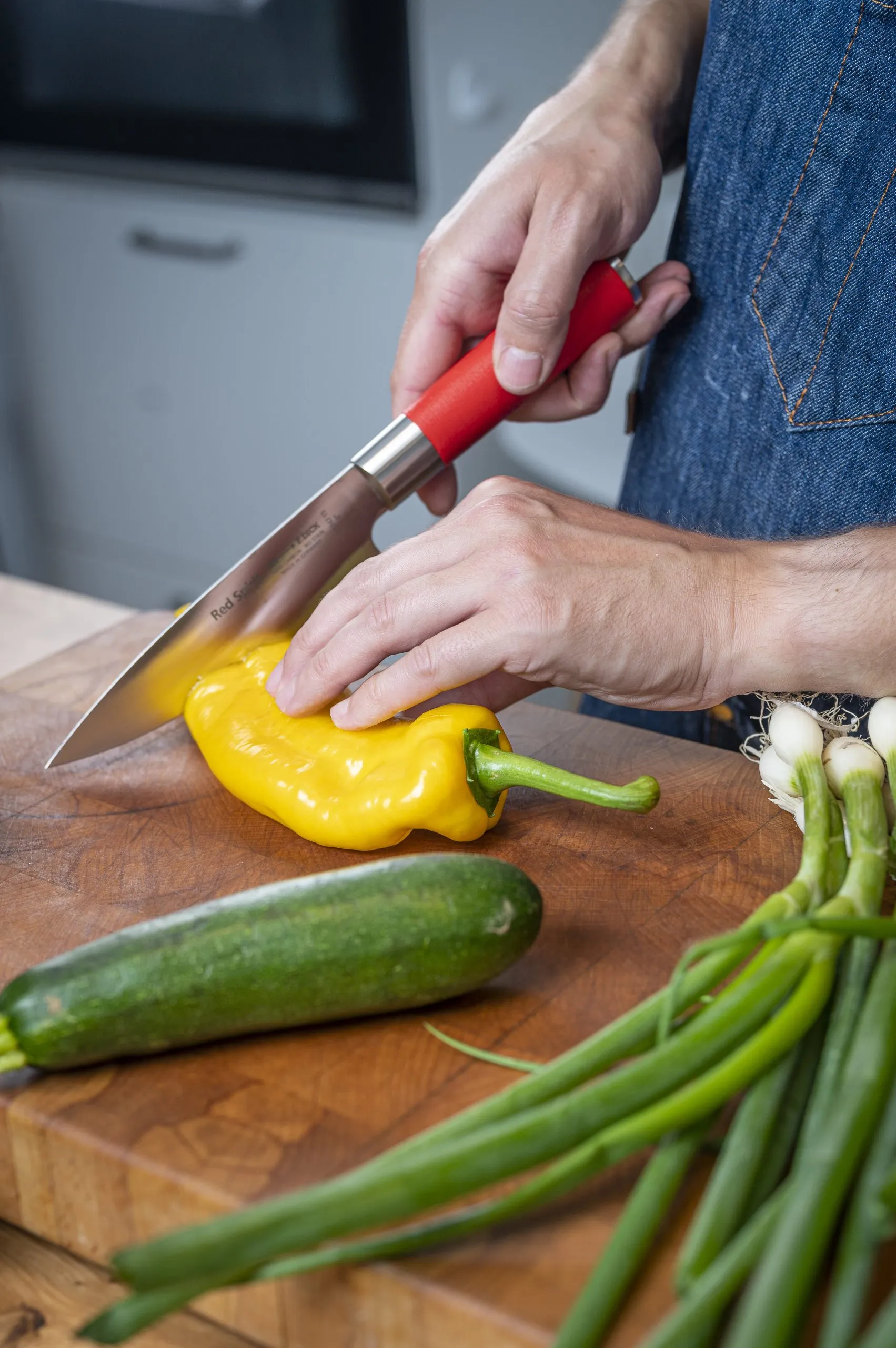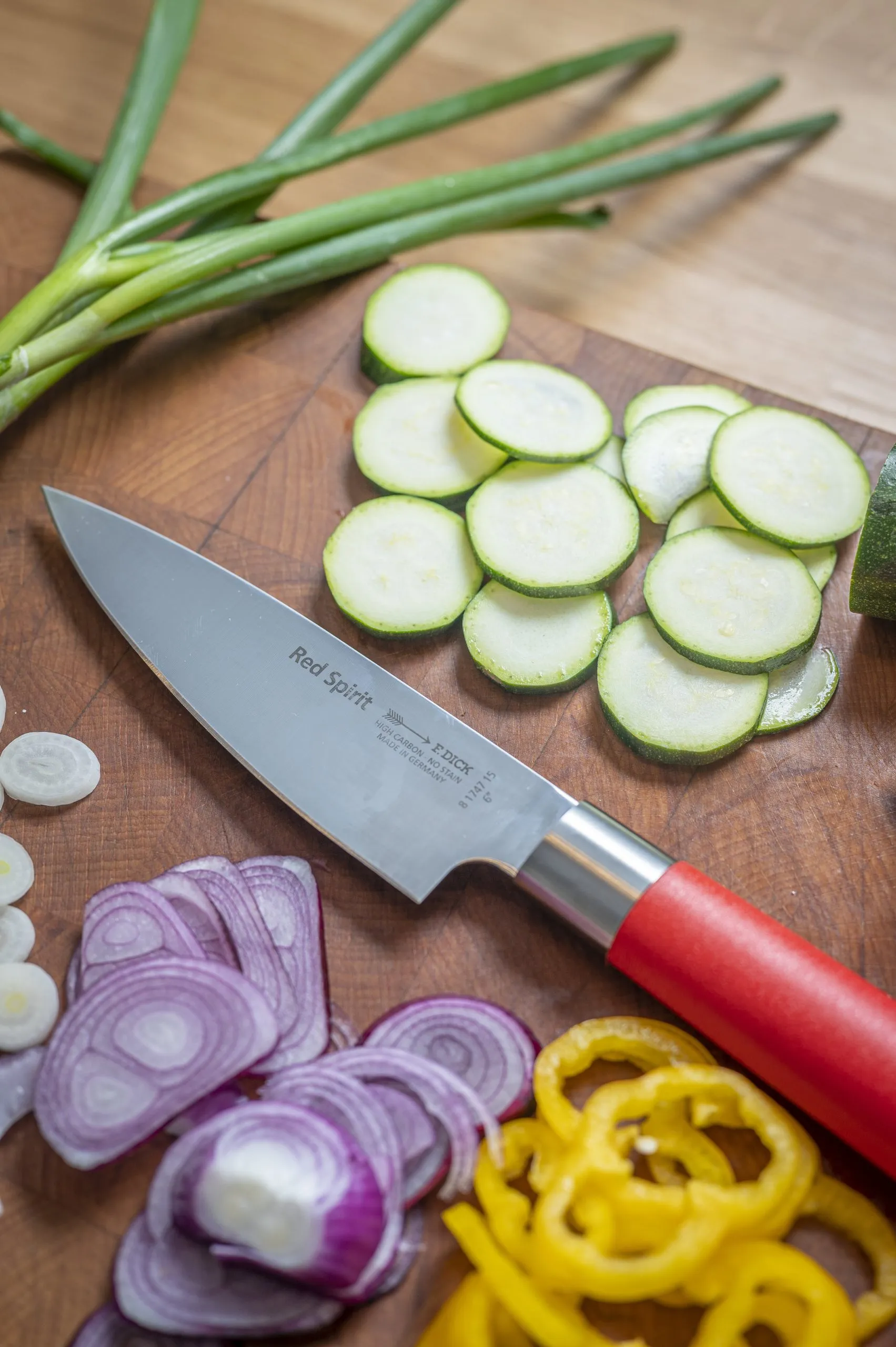 Nella serie di coltelli Red Spirit il migliore acciaio tedesco incontra forme e design giapponesi per dare vita a una famiglia di prodotti dal forte carattere, estremamente taglienti e resistenti. La lama iper-sottile e l’angolo di affilatura di 25° garantiscono un taglio netto e pulito. L’acciaio ha una durezza di 56° HRC e la lega di cui si compone è progettata per garantire una lunga resistenza e una facile manutenzione.