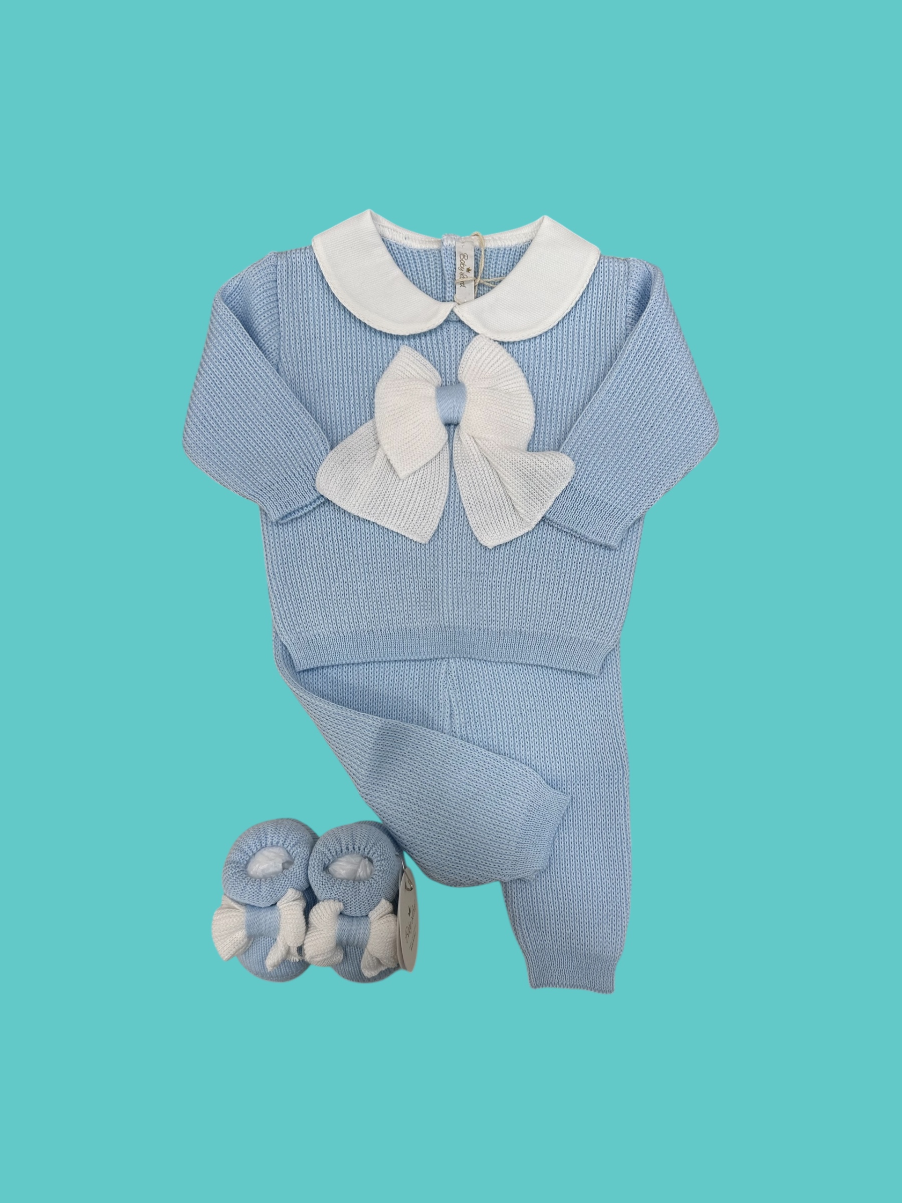 Splendido completino con scarpe coordinate realizzato in 100% filo di cotone italiano.