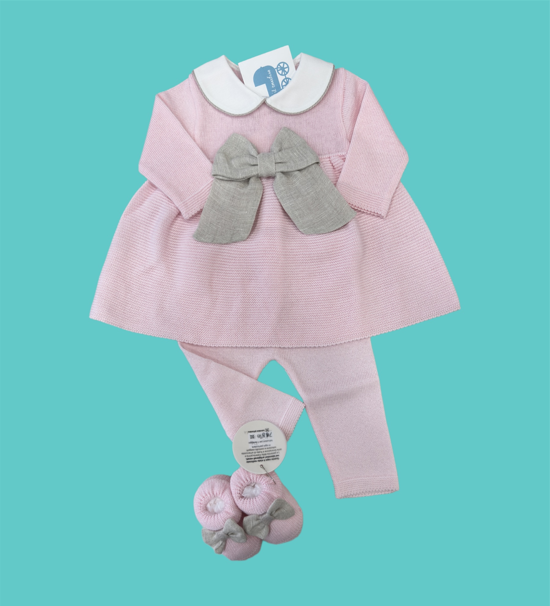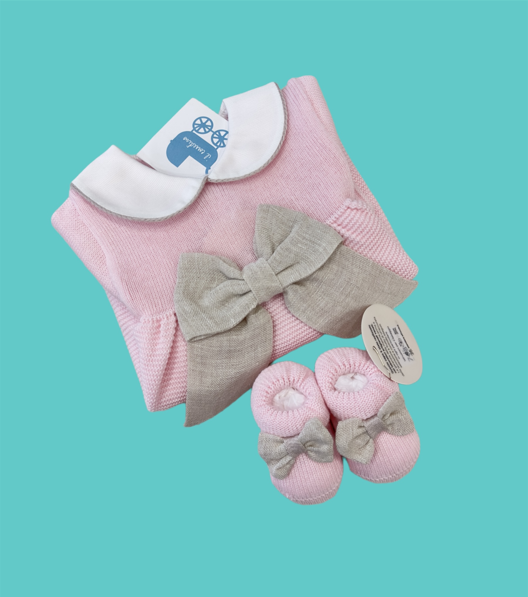 Raffinato completino realizzato in sabbia e rosa con scarpe coordinate.