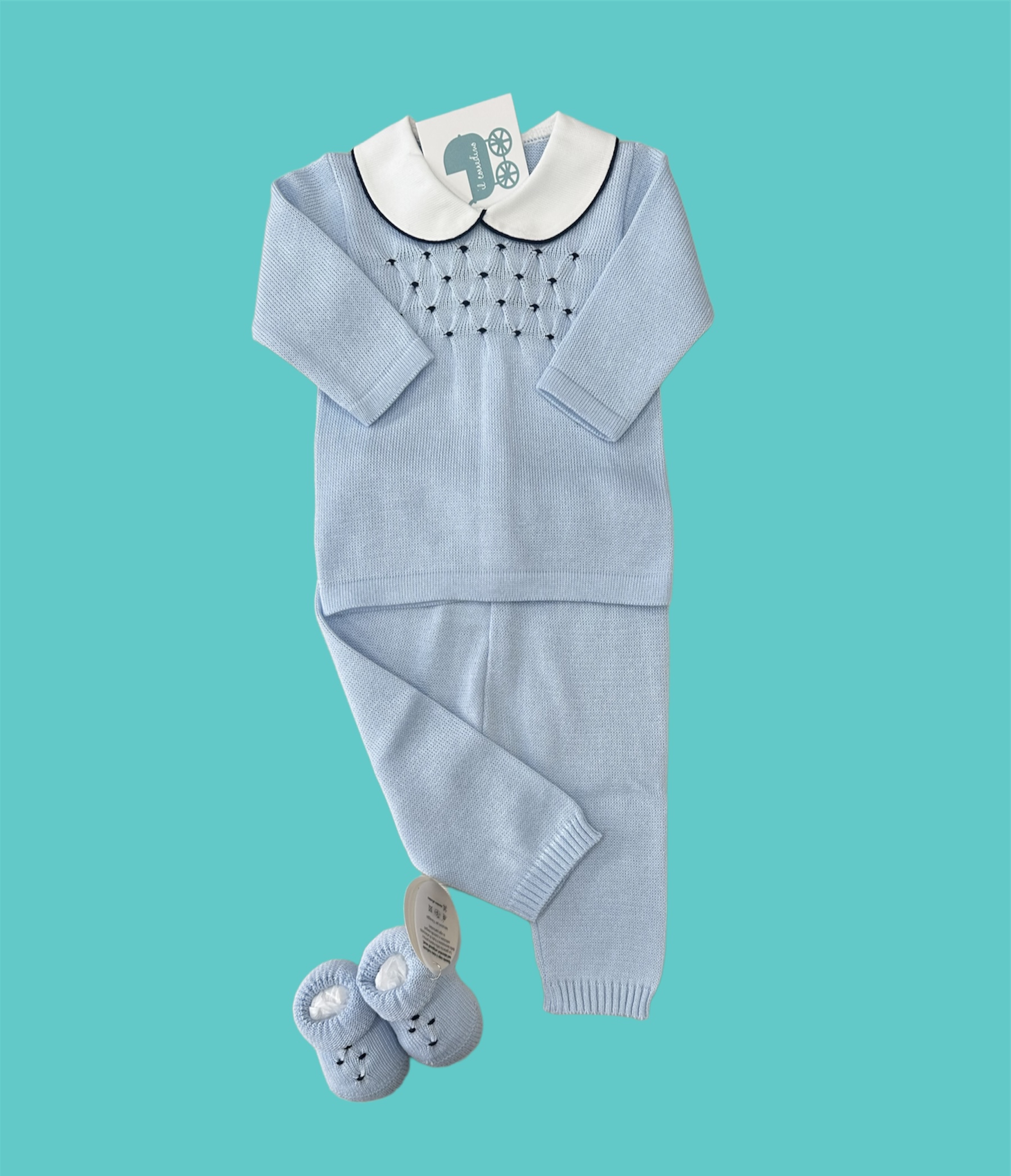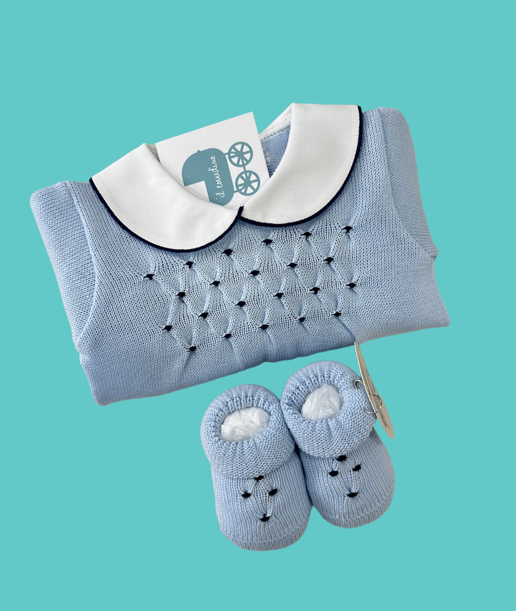 Dolcissimo completino in filo di cotone con scarpe coordinate.