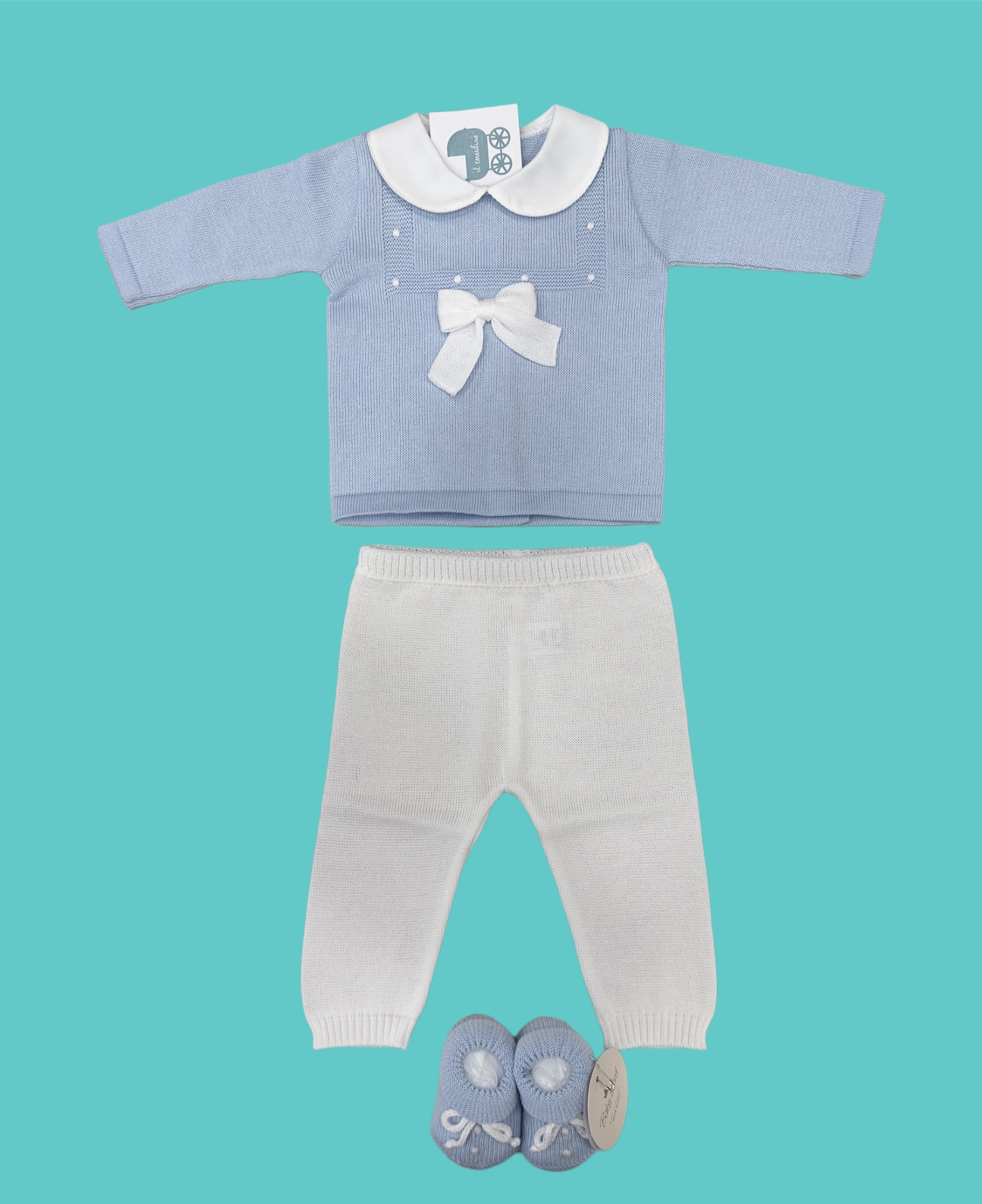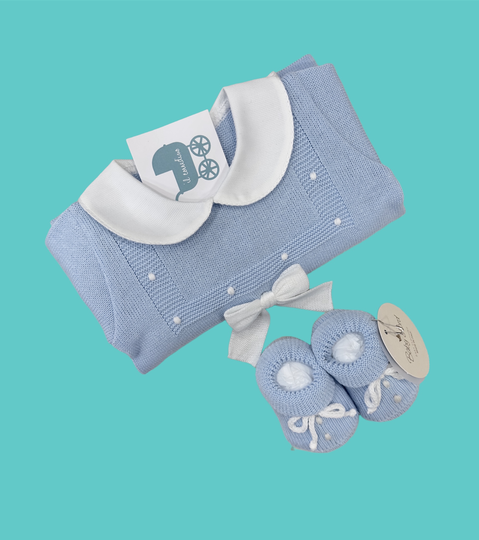 Tenero completino corto con scarpe coordinate realizzato in pregiato filo di cotone made in Italy.