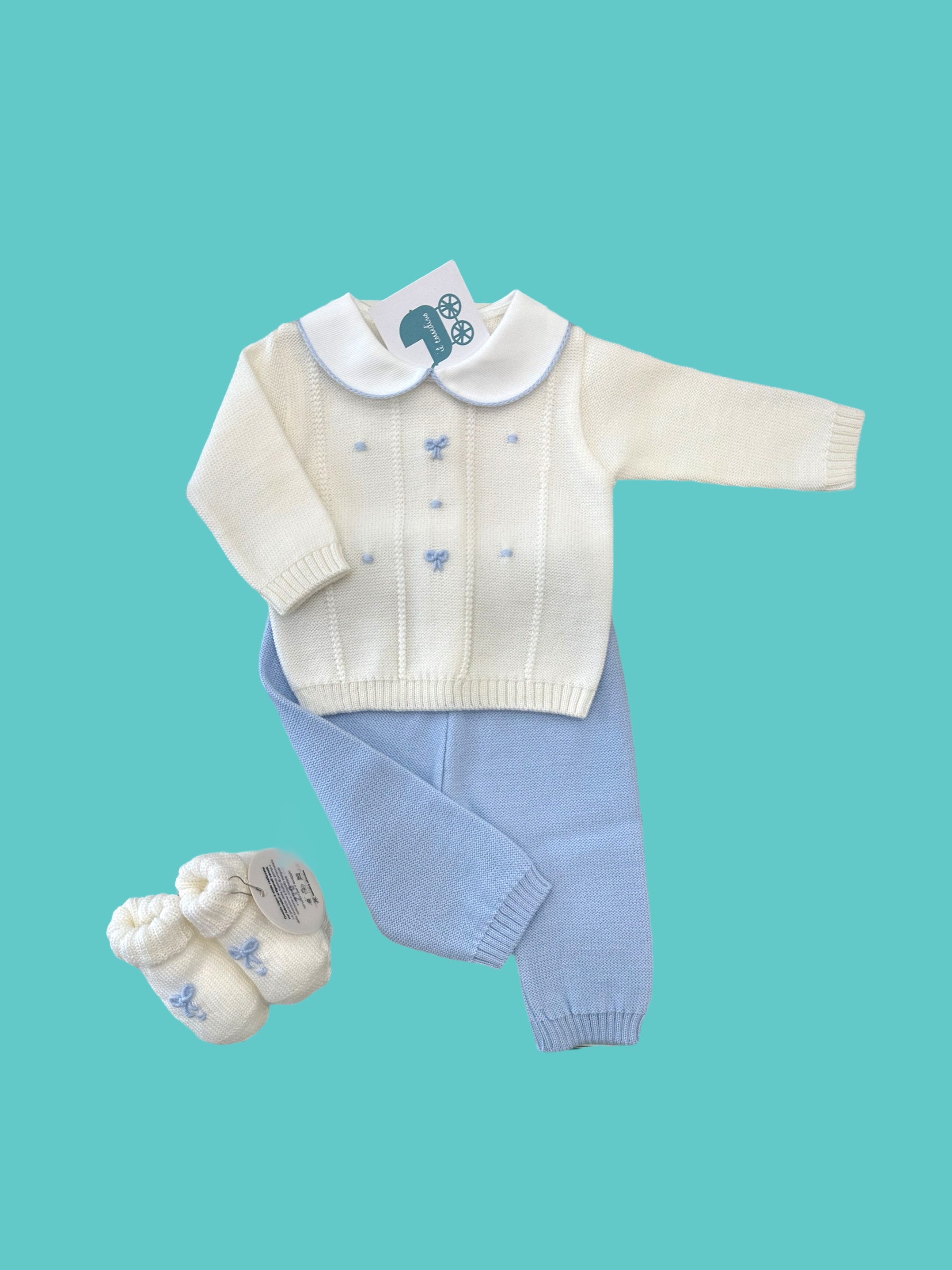 Completino e scarpe 100% lana made in Italy prodotti ricamati a mano