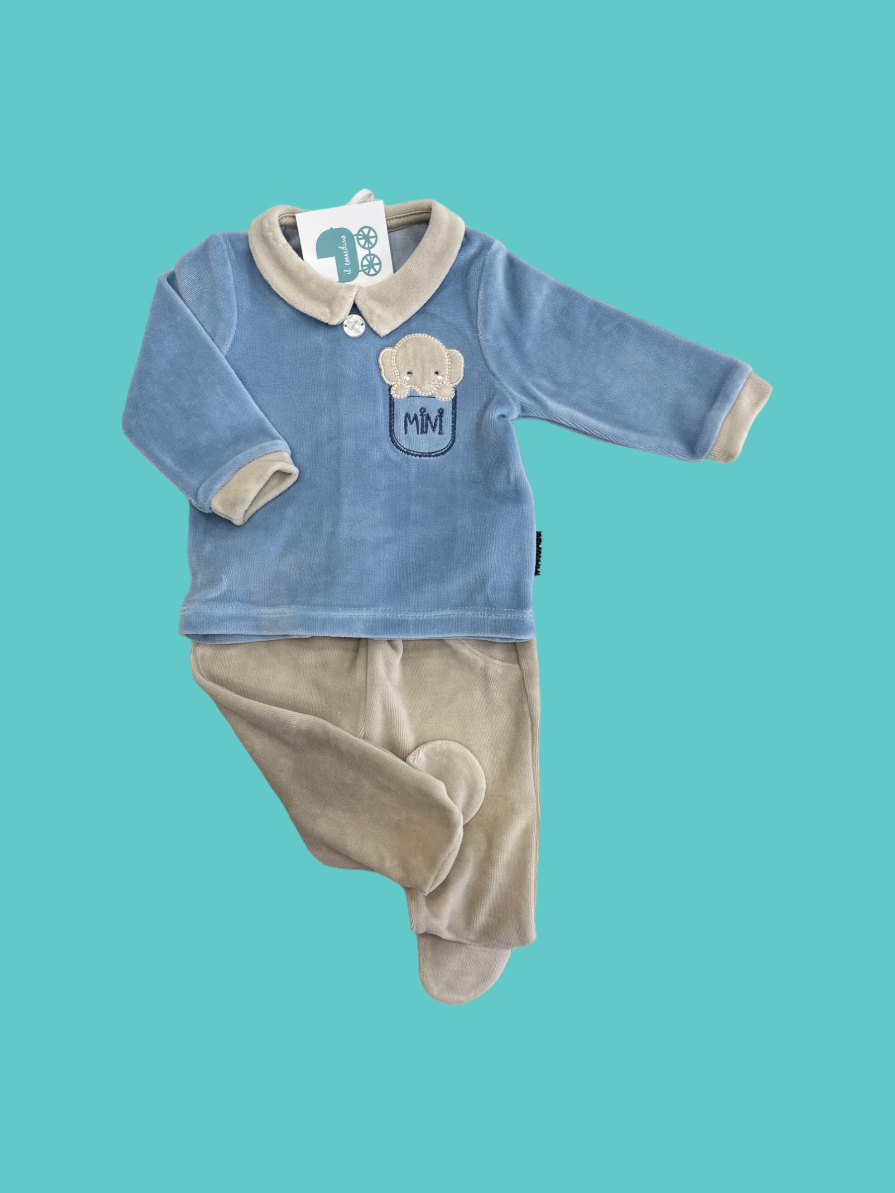 Morbido completino in ciniglia azzurro avio.