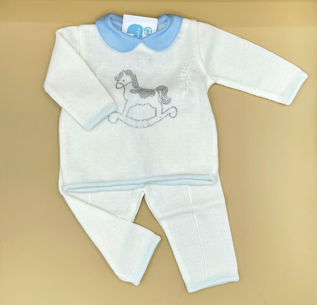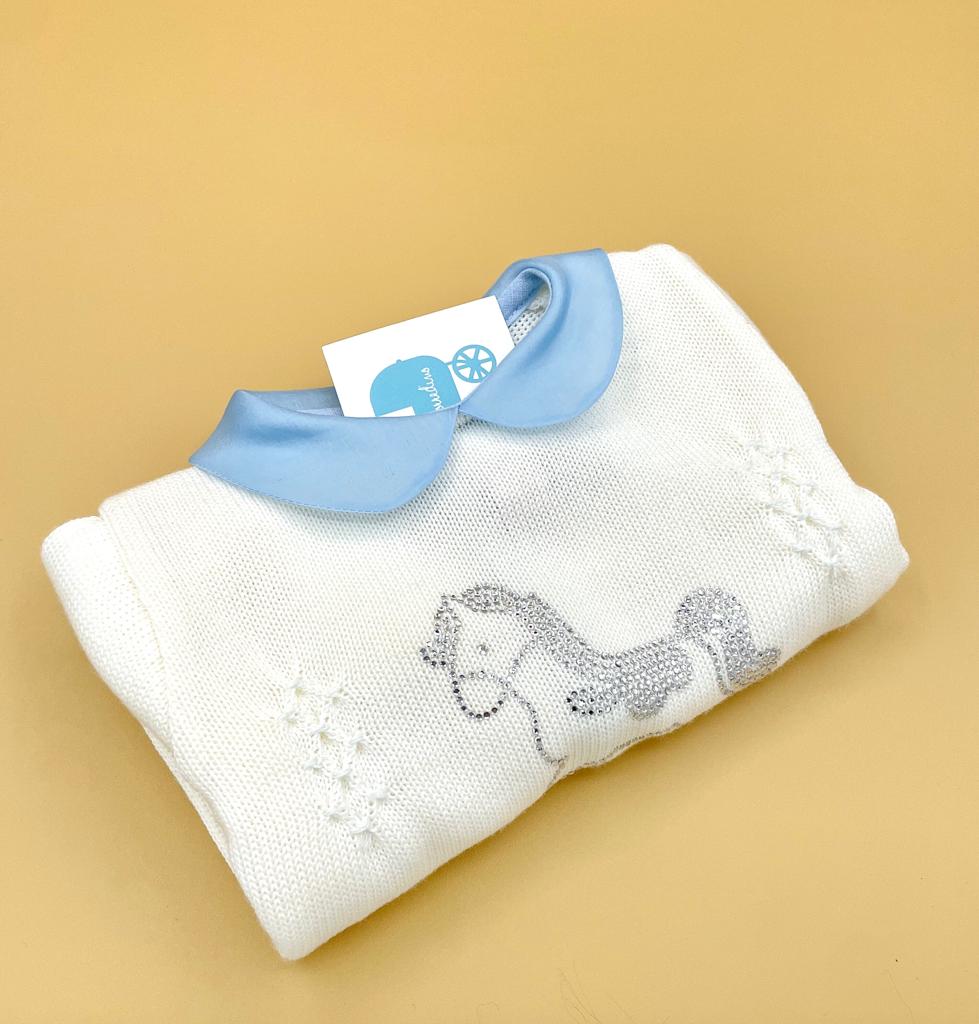 Delizioso completino in filo di cotone latte con dettagli con swaroski.