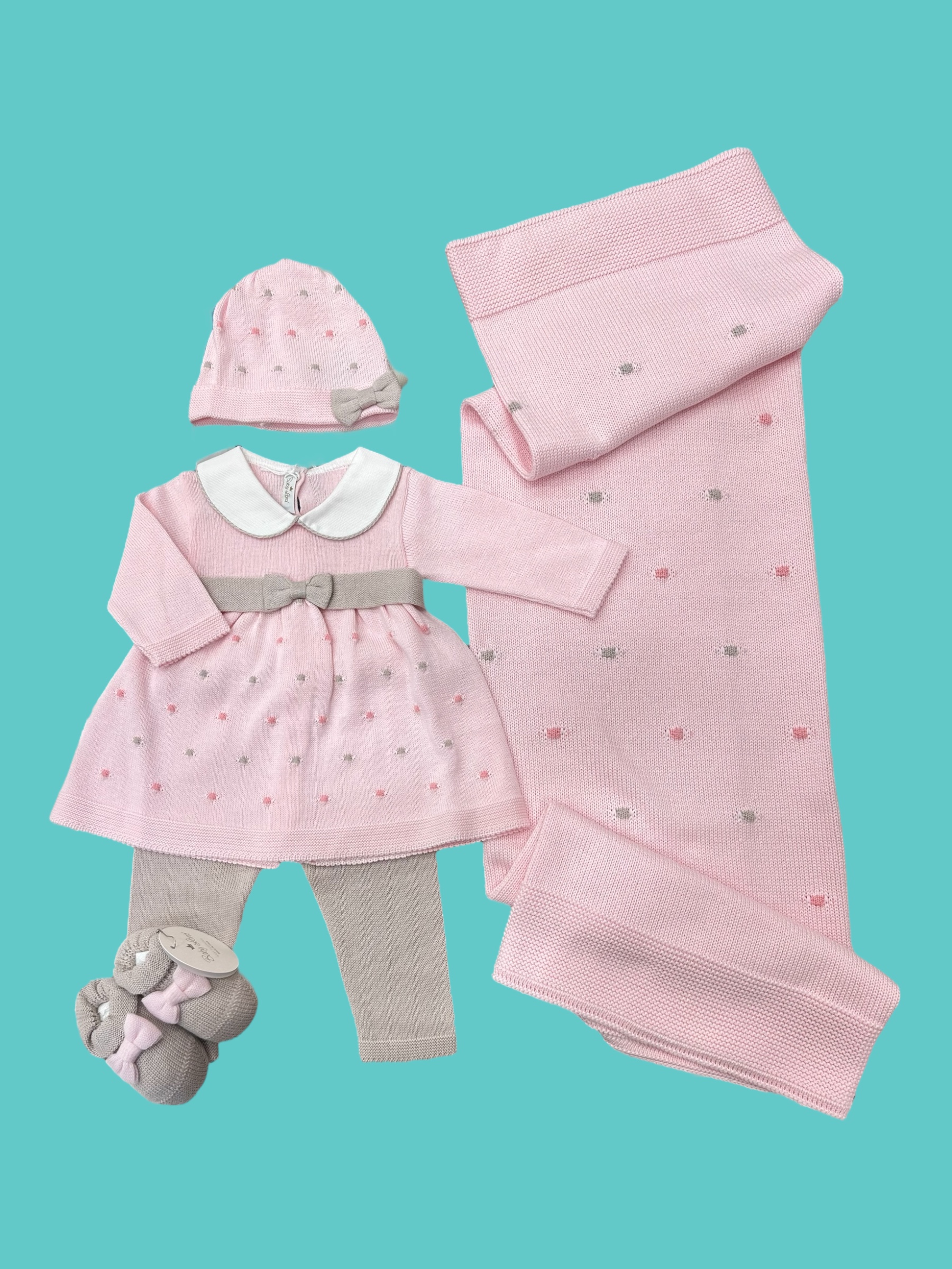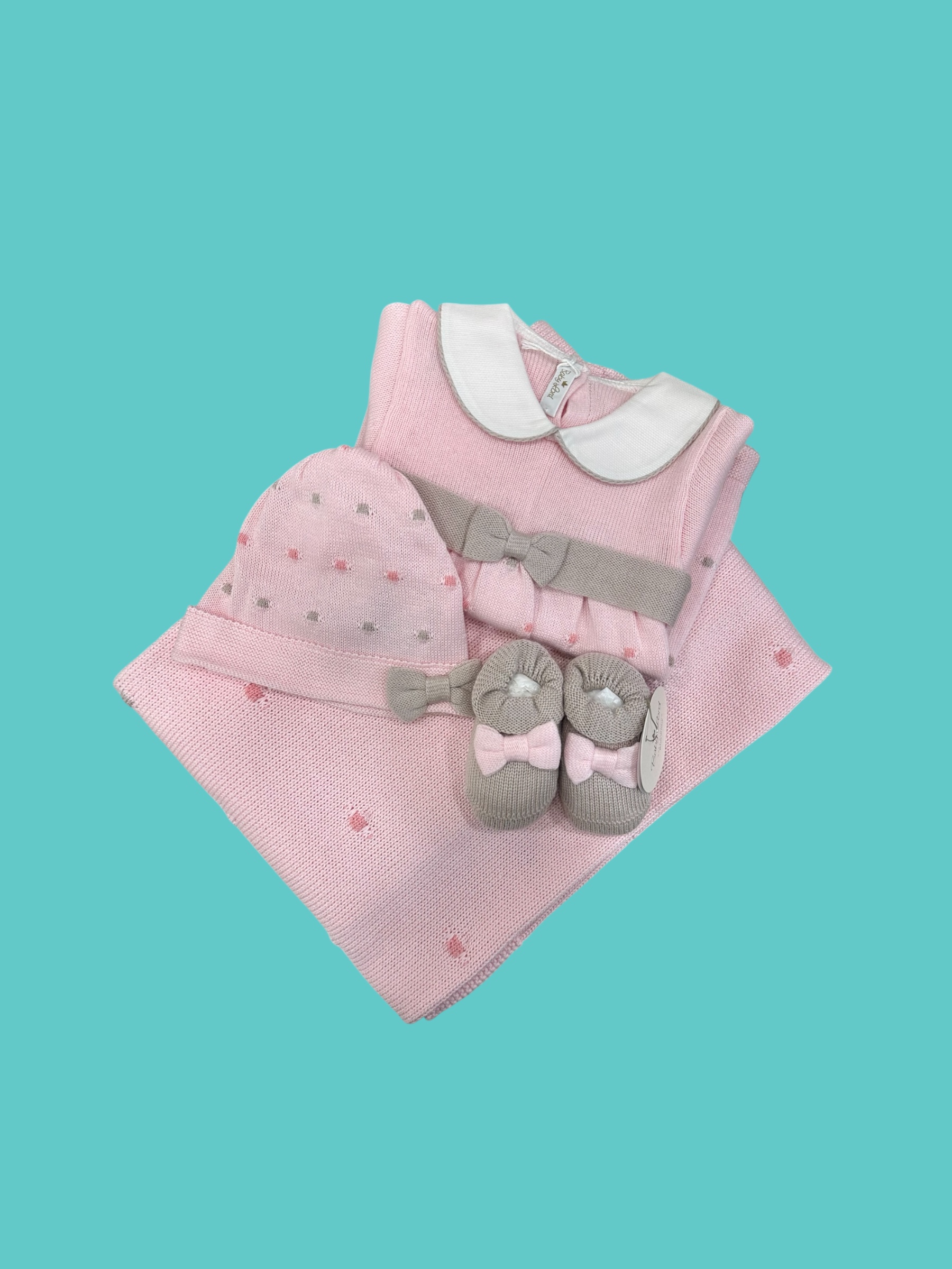 Pregiato coordinato in 100% filo di cotone made in Italy + accessori ricamati a mano