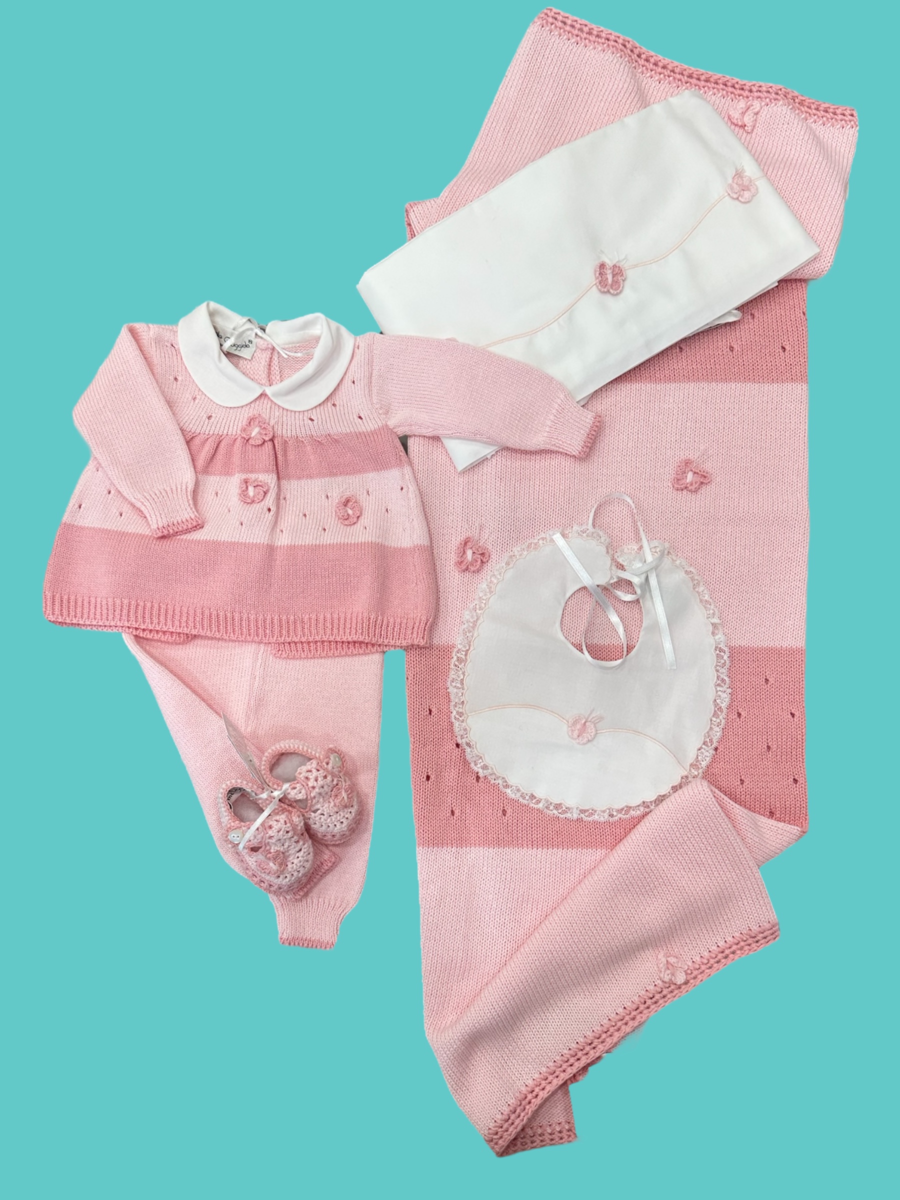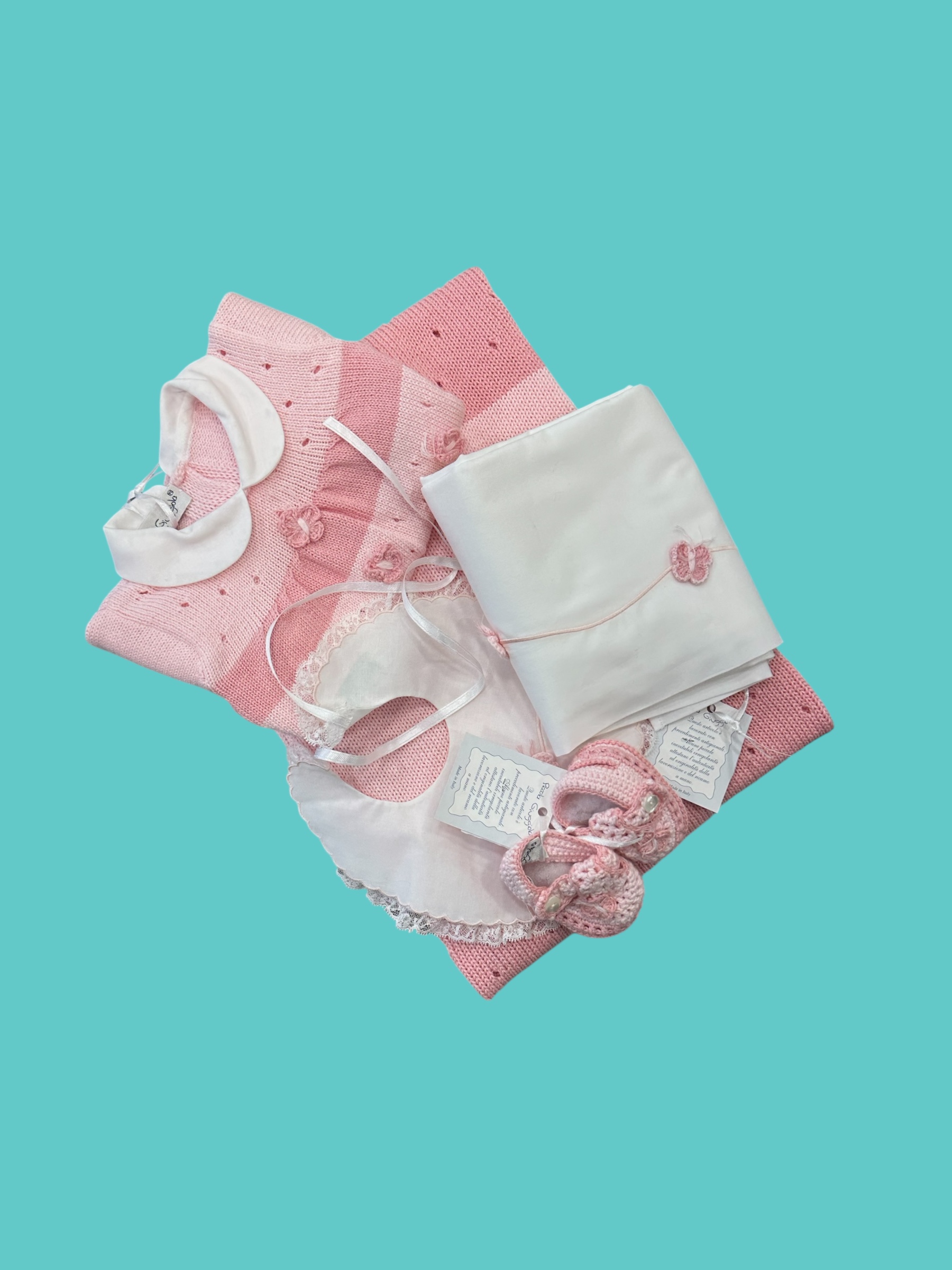 Pregiato coordinato in 100% filo di cotone made in Italy + accessori ricamati a mano
