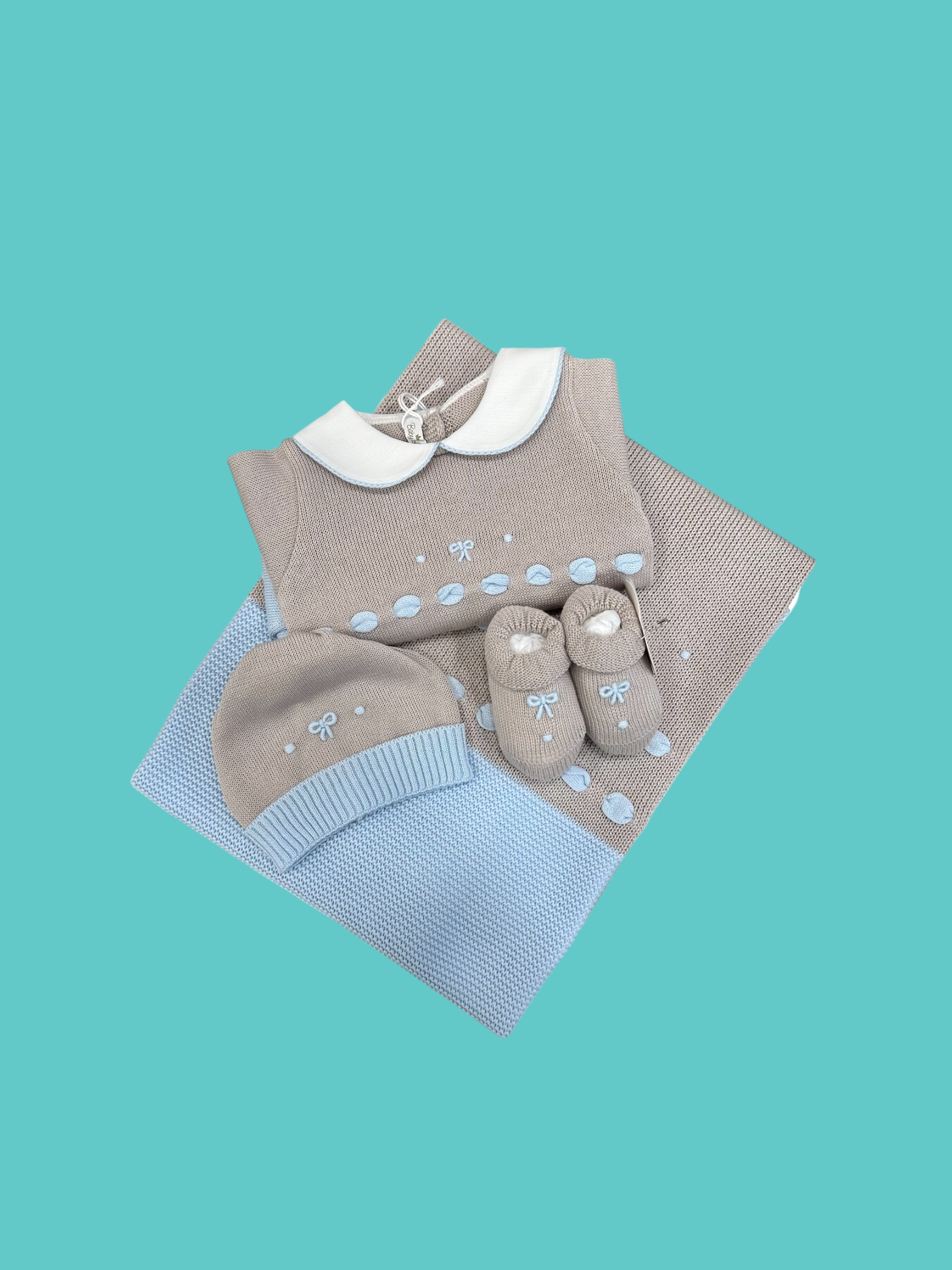 Coordinato con : completino, scarpe ,coperta, cappello 100% filo di cotone made in Italy