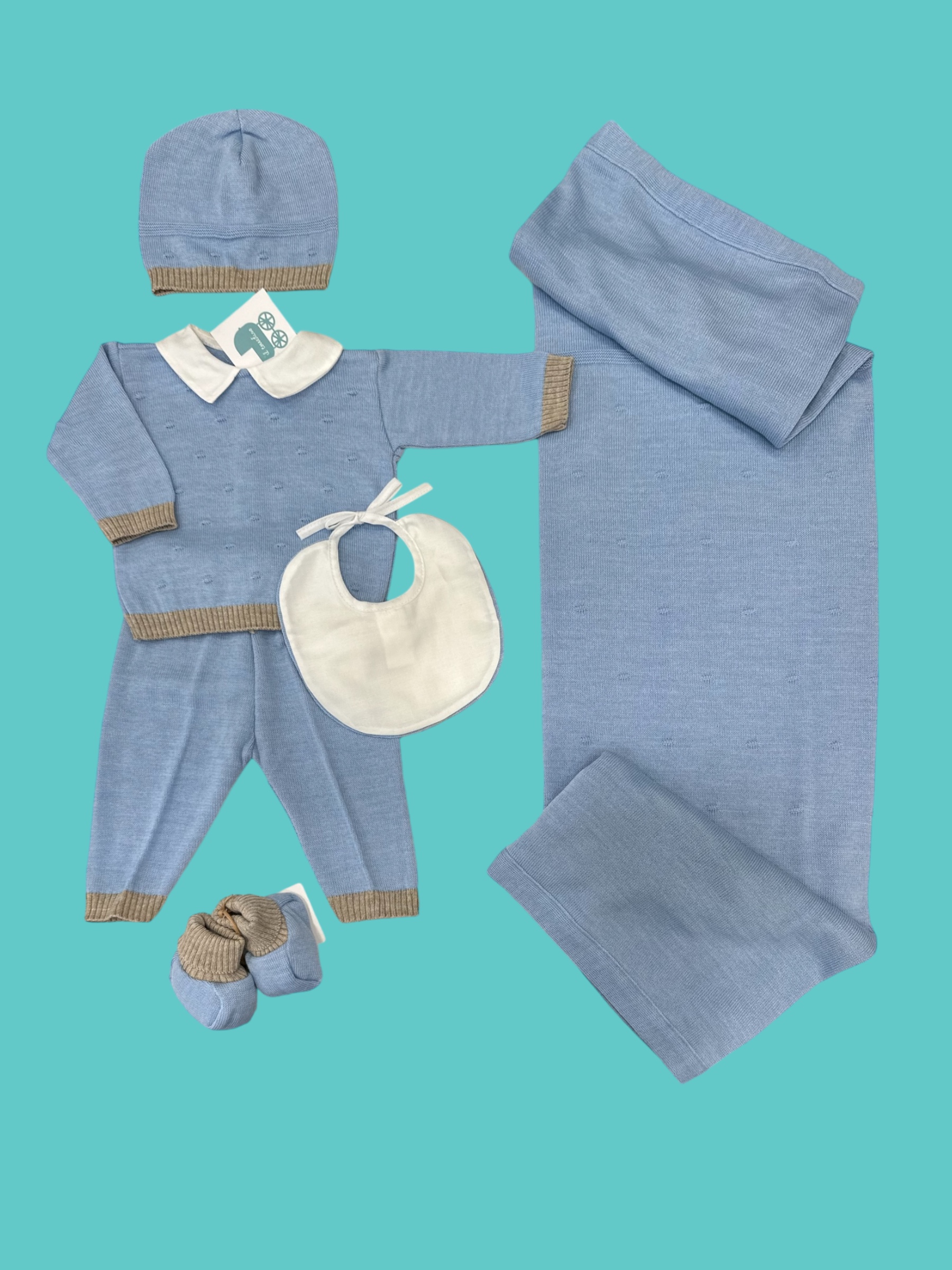 Coordinato tutina, scarpe, cappello, coperta made in Italy 50% lana 50% acrilico anallergico