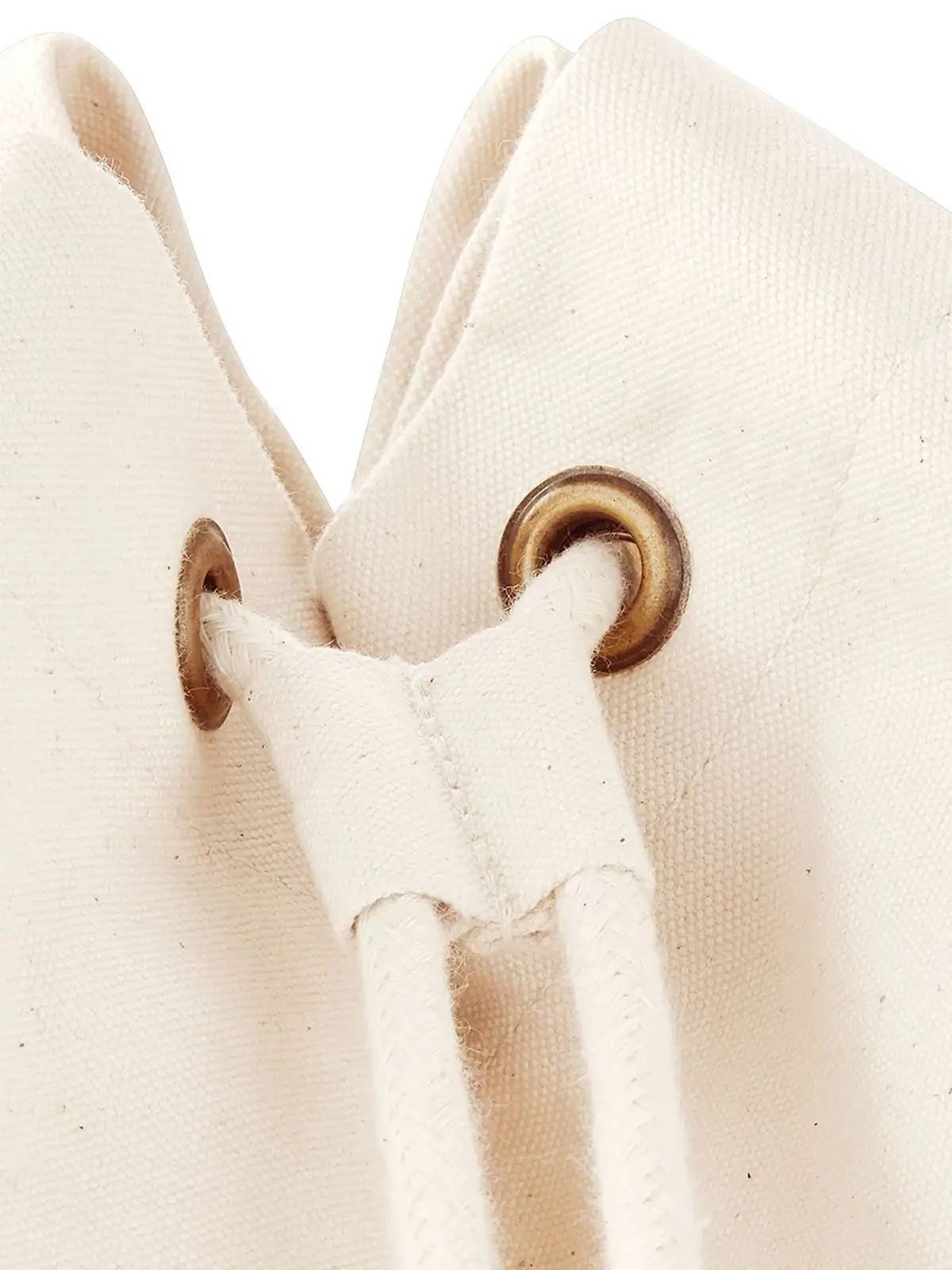 100% Cotone Canvas organico. Sacca in tessuto certificato Control Union. Chiusura con cordino regolabile. Dimensioni: 25 x 53 x 25 cm, capacita’: 20 litri, area stampabile: 40 x 40 cm.