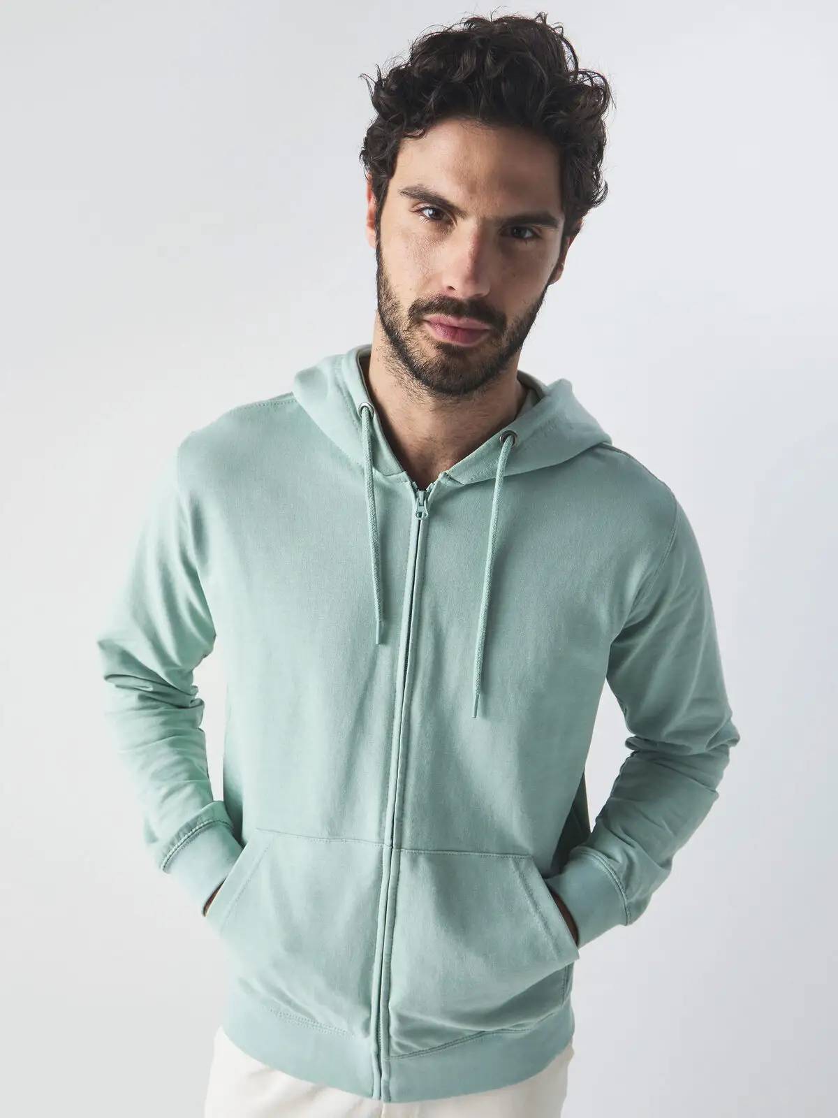 Felpa full zip con cappuccio in french terry BS304