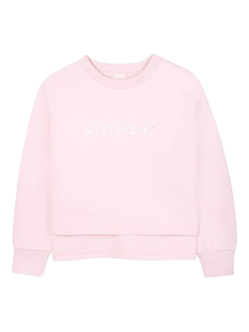 Felpa con logo Givenchy Kids, rosa, girocollo, maniche lunghe, polsini, stampa logo sul davanti, orlo con spacchetti laterali.