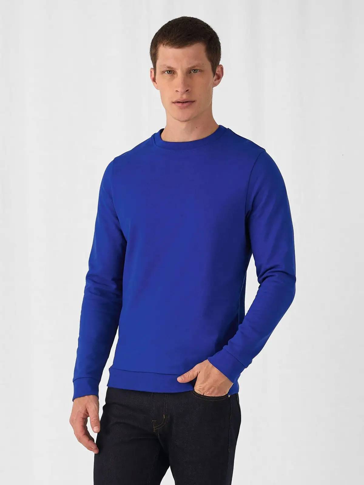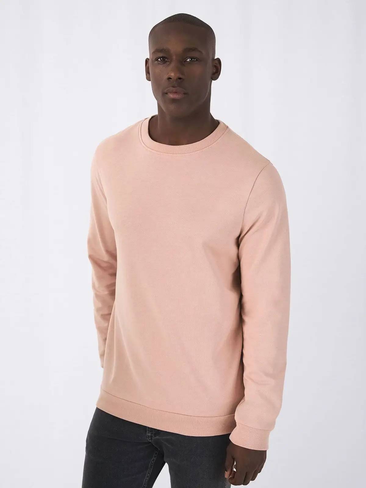 80% Cotone ring-spun preristretto, 20% Poliestere. Felpa girocollo minimal con maniche set-in, struttura con cuciture laterali e mezzaluna in single Jersey sulla parte interna del colletto posteriore per una facile personalizzazione. Sgarzata internamente, morbida e liscia esternamente per una migliore resa di stampa. Nessuna etichetta B&C. Colori Heather: 60% cotone 40% poliestere. Heather Grey: 92% cotone 8% viscosa.