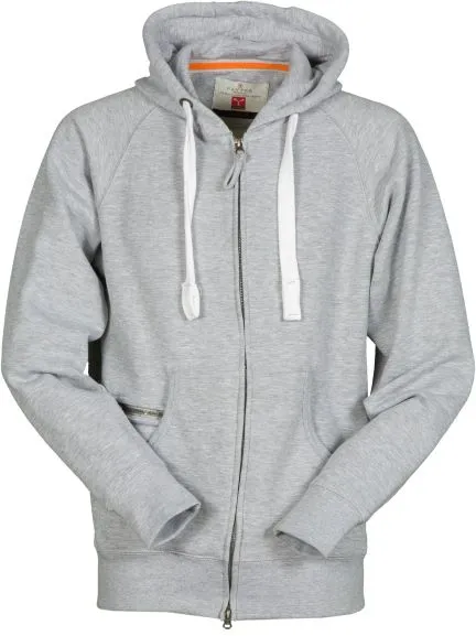 Felpa da uomo, zip intera SBS coperta, in plastica con doppio cursore in metallo, cappuccio con due cuciture, coulisse bianca in corda con cuciture in tinta con la felpa e anelli in metallo, manica raglan, tasche a marsupio con taschino con zip, polsini e vita in costina elasticizzata. Cuciture rinforzate.