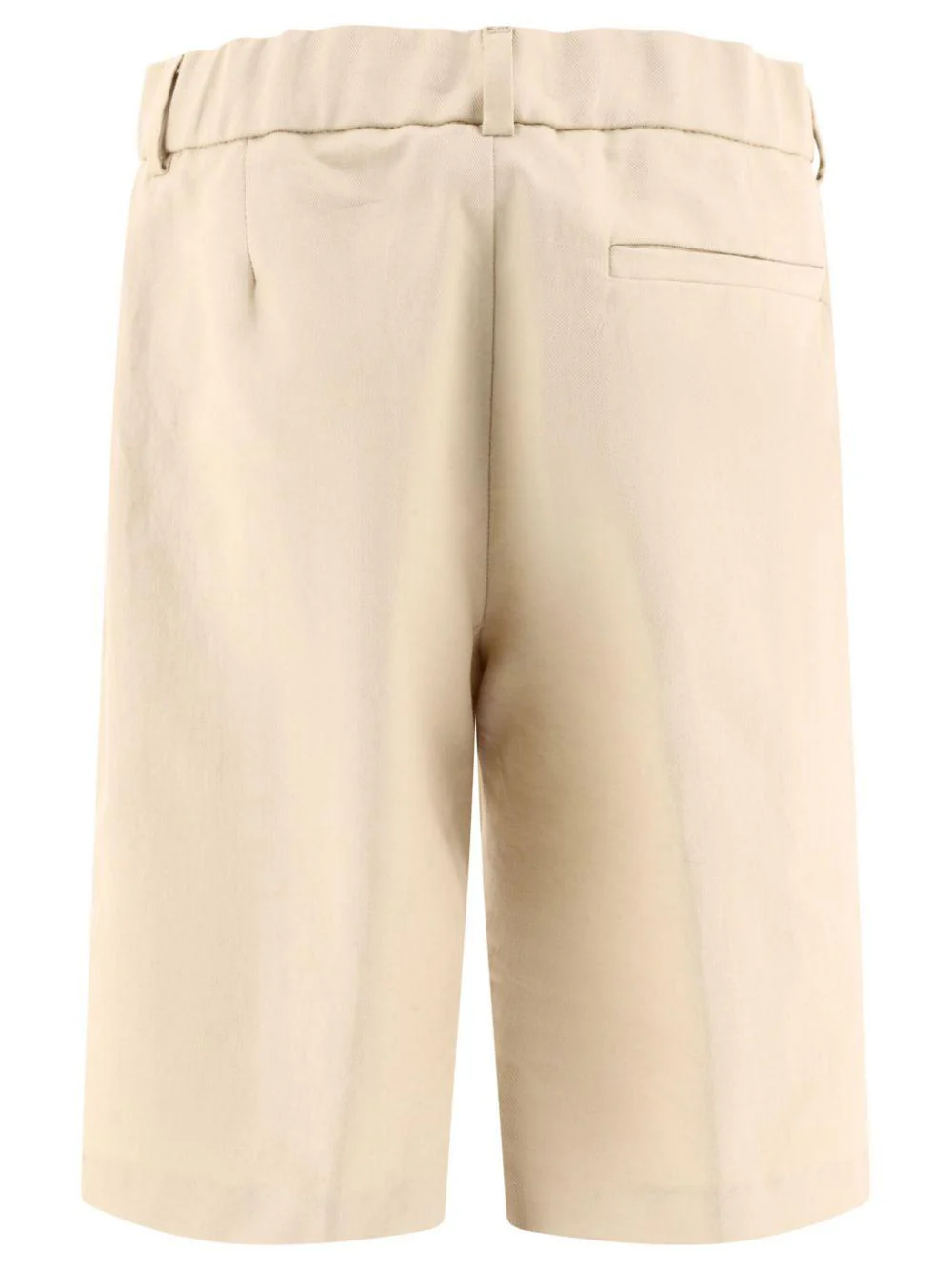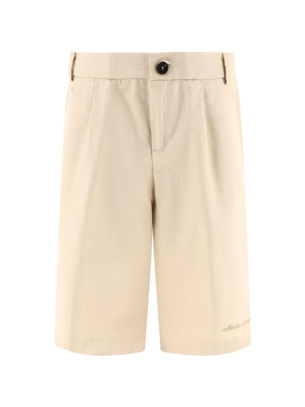 Bermuda In lino Fendi Kids, beige, logo ricamato, passanti per cintura, vita elasticizzata, due tasche laterali, tasca su lretro, chiusura con bottone e zip.