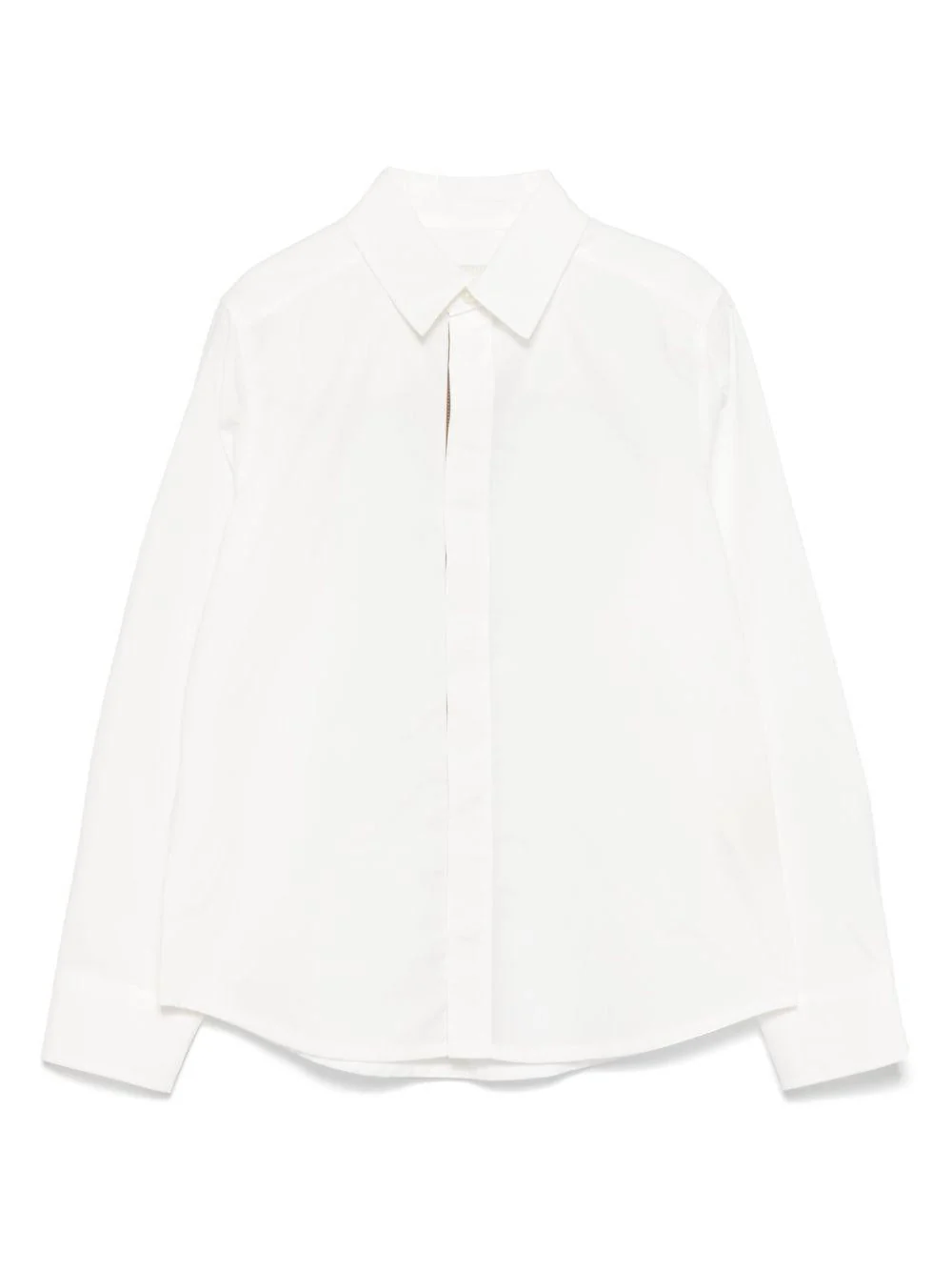 Camicia in popeline Fendi Kids, bianco, maniche lunghe, orlo con bottone, colletto, chiusura con bottoni, bordino interno con logo FF all-over.