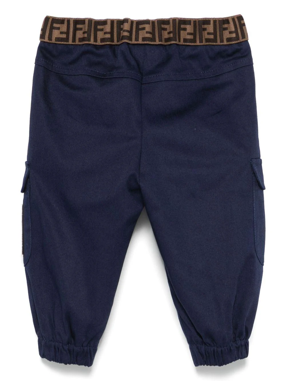Pantaloni cargo Fendi Kids, blu, vita elasticizzata con banda logata FF, due tasche laterali, due tasche cargo, toppa ricamata con logo, caviglie elasticizzate.Made in ItalyComposizionepoliestere 100%, cotone 97%, elastam 3%