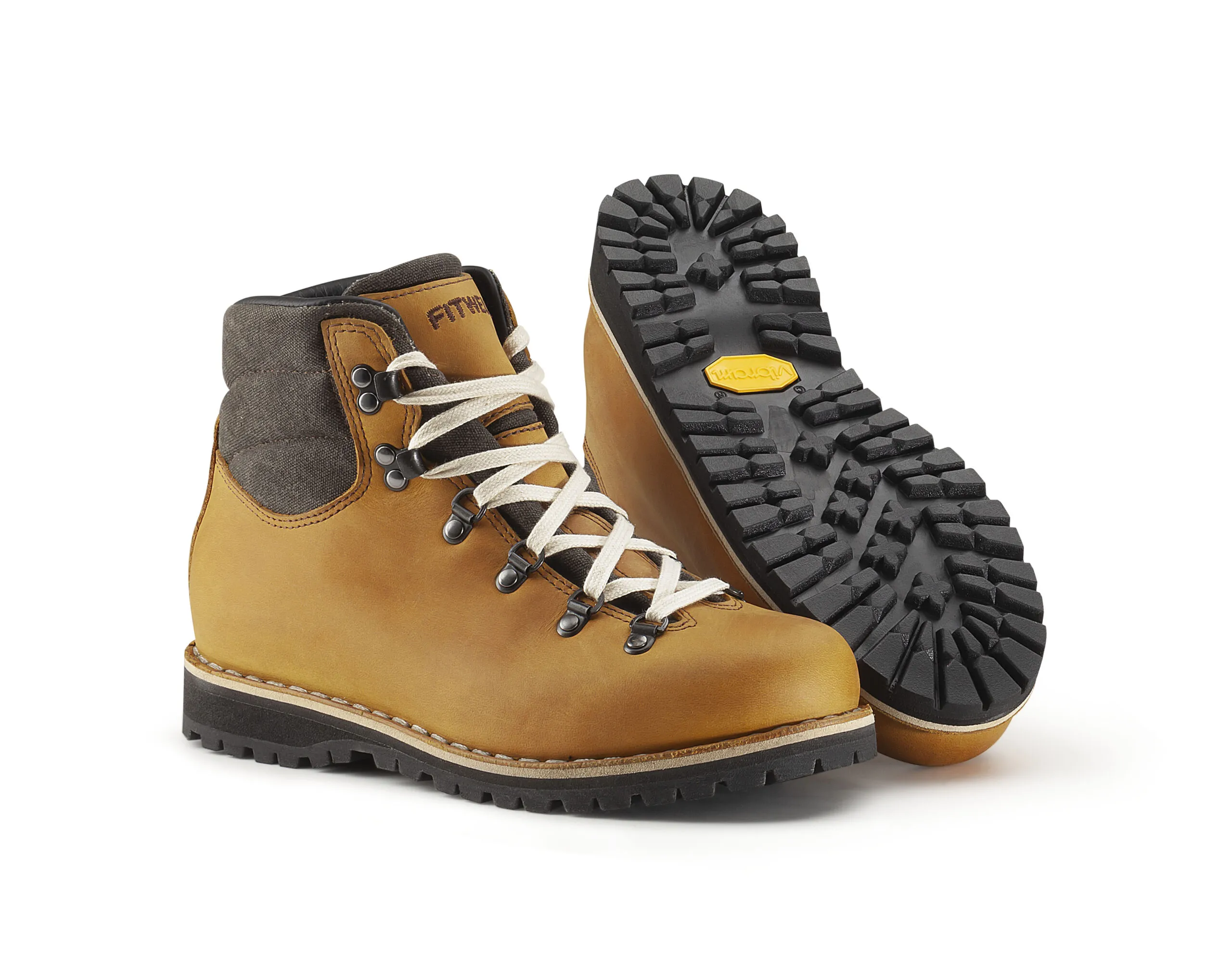 Upper in oiled nubuck, collar and bellows in Cordura. Inner lining in full grain leather for an excellent internal microclimate and a natural feeling of comfort. Sole with soft customized compound and cushioning microporous EVA wedge. Bottom with an “Ideal” stitching between the upper and midsole.