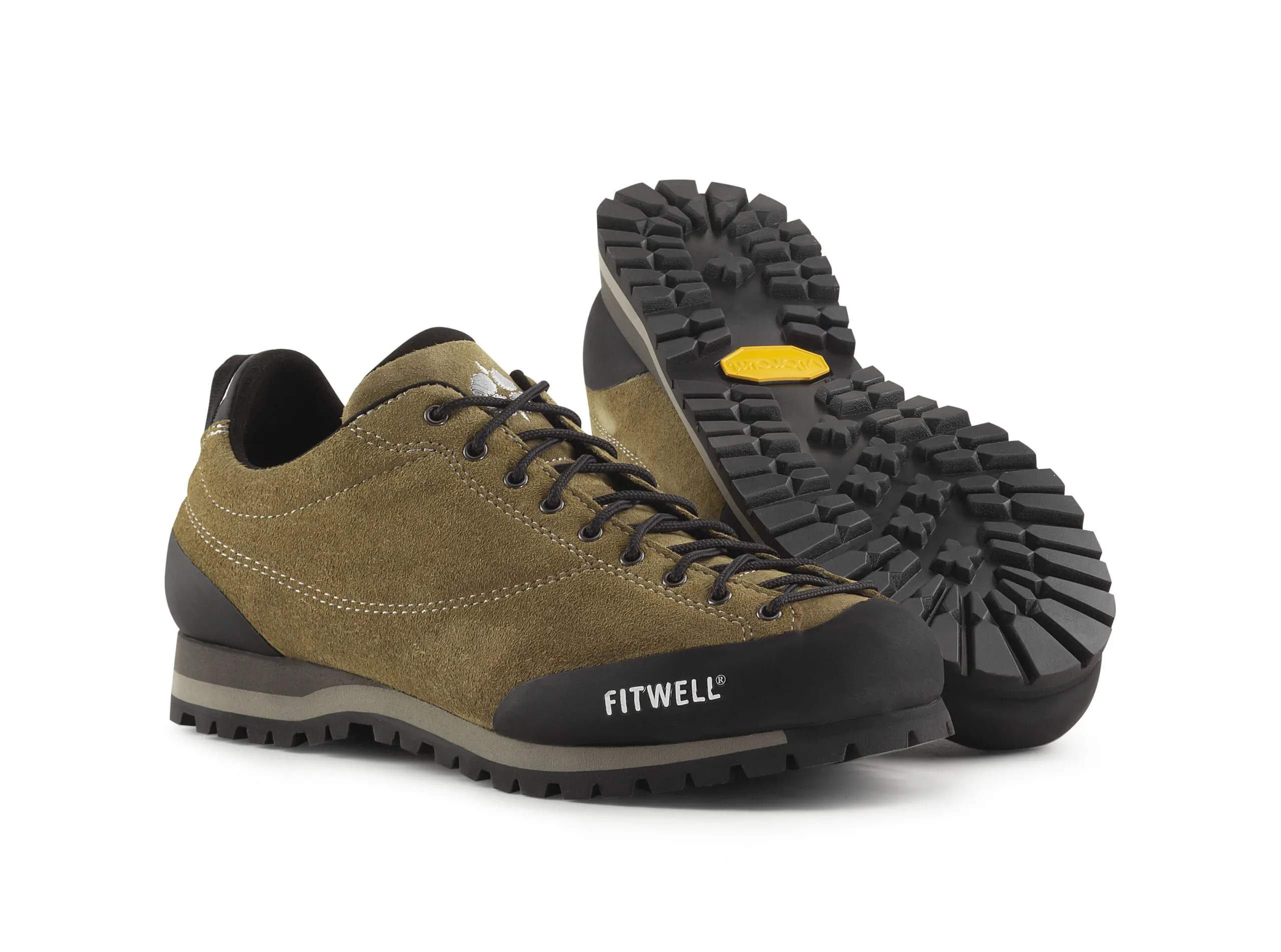 Modello storico, rivisto dal punto di vista estetico, ma che mantiene le caratteristiche che lo hanno reso un caposaldo della collezione Fitwell: tomaia in pelle scamosciata idrorepellente, forma fasciante con allacciatura regolabile fino alla punta, battistrada con ottimo grip grazie alla mescola morbida e personalizzata. UPPER: Water repellent Suede leather LINING: Microfiber + Mesh FOOTBED: Fitwell Air Move INSOLE: Tear-resistant Nylon fabric + Felt SOLE: Vibram® Jankuat + double density EVA SIZE: 3 – 15 UK WEIGHT: 415 gr. ½ pair, size 8