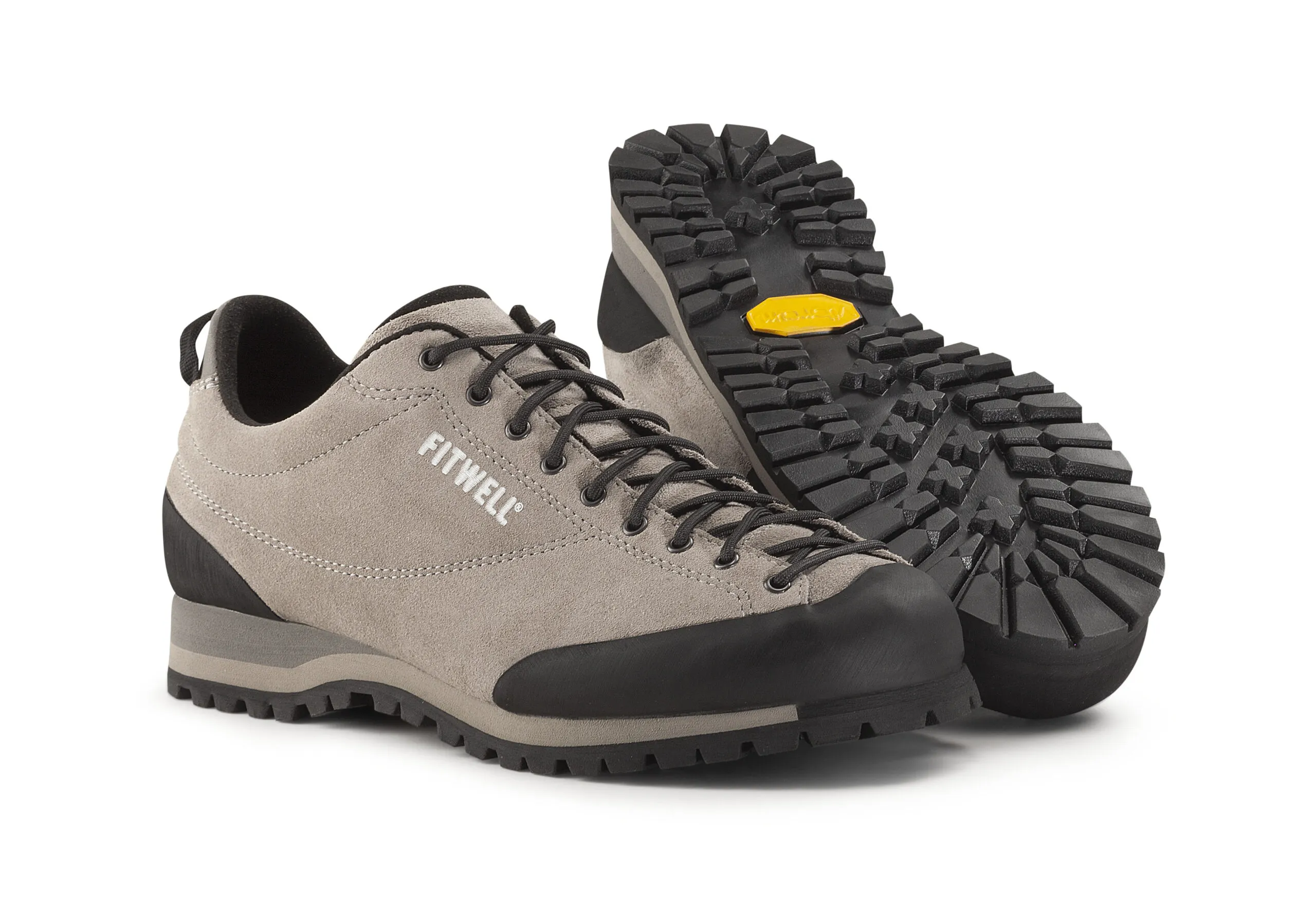 Modello storico, rivisto dal punto di vista estetico, ma che mantiene le caratteristiche che lo hanno reso un caposaldo della collezione Fitwell: tomaia in pelle scamosciata idrorepellente, forma fasciante con allacciatura regolabile fino alla punta, battistrada con ottimo grip grazie alla mescola morbida e personalizzata. UPPER: Water repellent Suede leather LINING: Microfiber + Mesh FOOTBED: Fitwell Air Move INSOLE: Tear-resistant Nylon fabric + Felt SOLE: Vibram® Jankuat + double density EVA SIZE: 3 – 15 UK WEIGHT: 415 gr. ½ pair, size 8