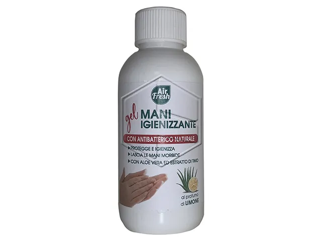 Gel igienizzante maniย con concentrato di aloe e profumazione al limone. Azione igienizzante rapida, alcool 60ยฐ. Prodotto in Italia.