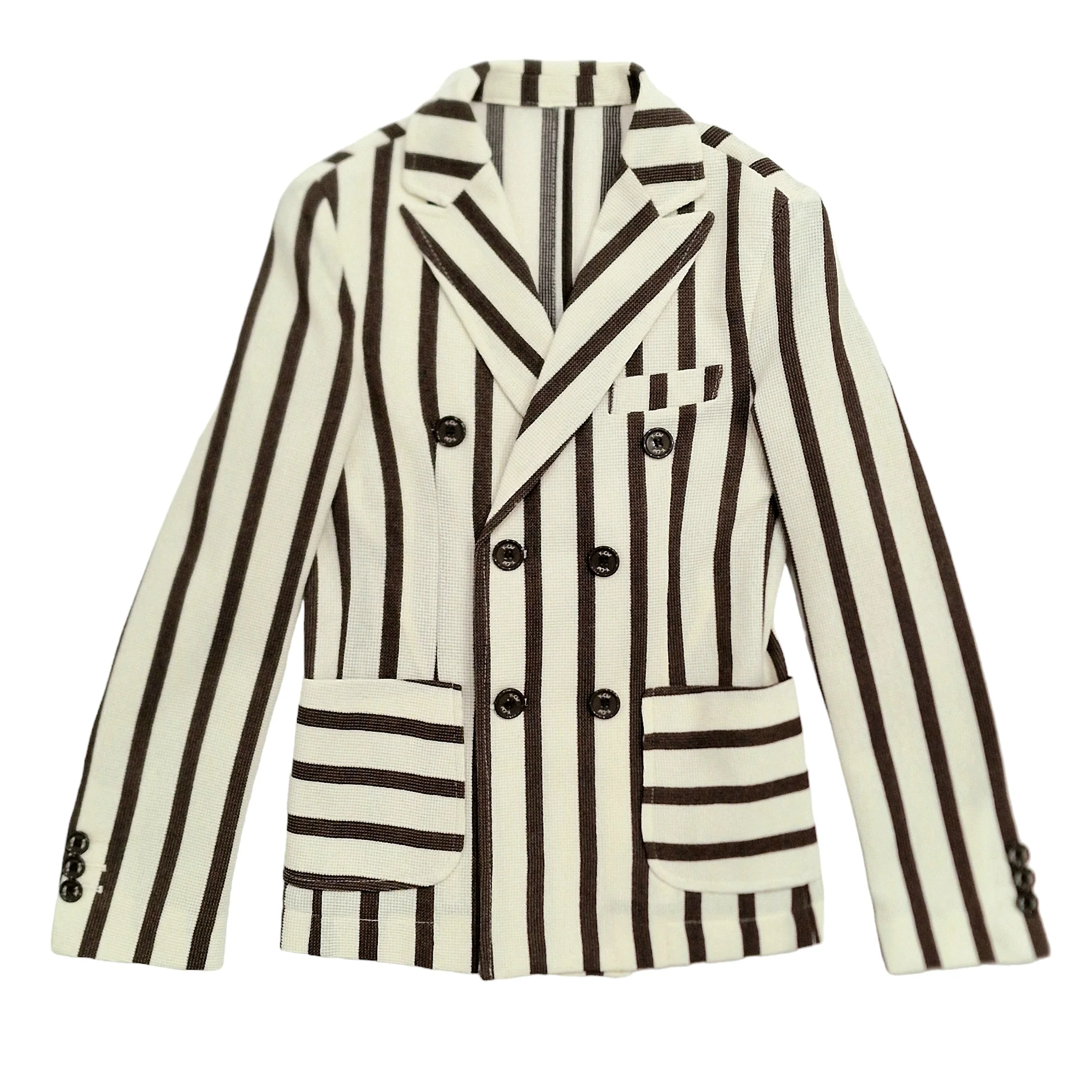 “La giacca bambino in tessuto cotone traspirante, dal doppio petto e stile fasciato panna e moro, garantisce comfort e un look elegante per il tuo bambino. Perfetta per ogni occasione, dona un tocco di classe al guardaroba del tuo piccolo.”