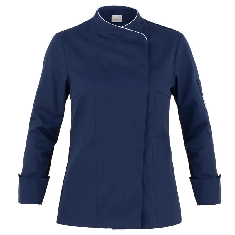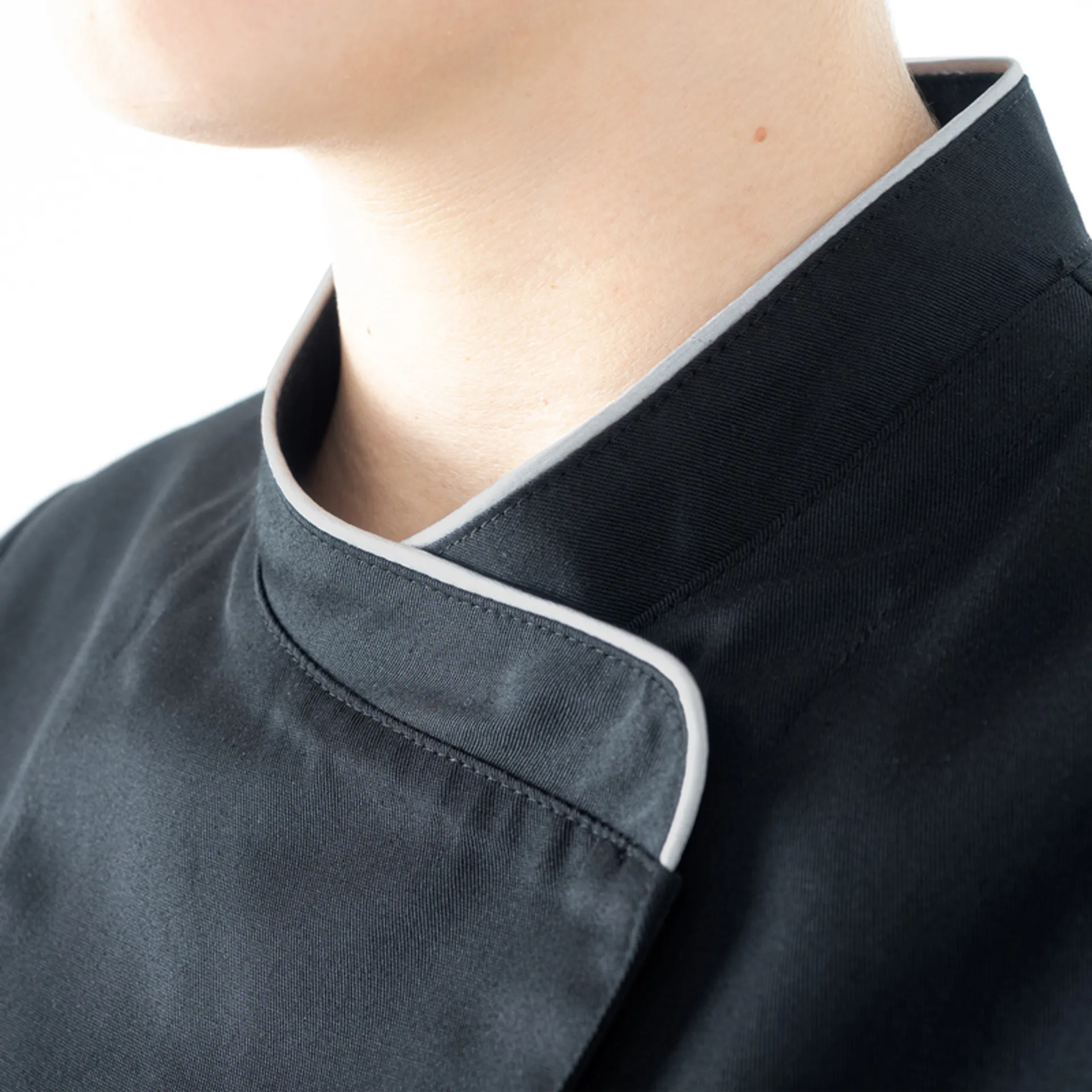 La giacca Susi è un capo dall’impronta classica, rivisitato in chiave contemporanea, grazie ai due tagli laterali in maglia di piquet, che sagomano il retro, conferendo alla giacca una vestibilità slim fit e assicurando il massimo comfort nei movimenti. Il capo presenta il collo alla francese, l’abbottonatura rigorosamente nascosta, il taschino sul petto e il portapenne. Sia nel collo che nei polsi è inserito il classico piping. Susi è proposta in bianco con piping grigio perla o tricolore, in nero con piping grigio perla, e nelle nuance blu e bordeaux con piping grigio perla. Ha la sua variante maschile nella giacca Patrizio.